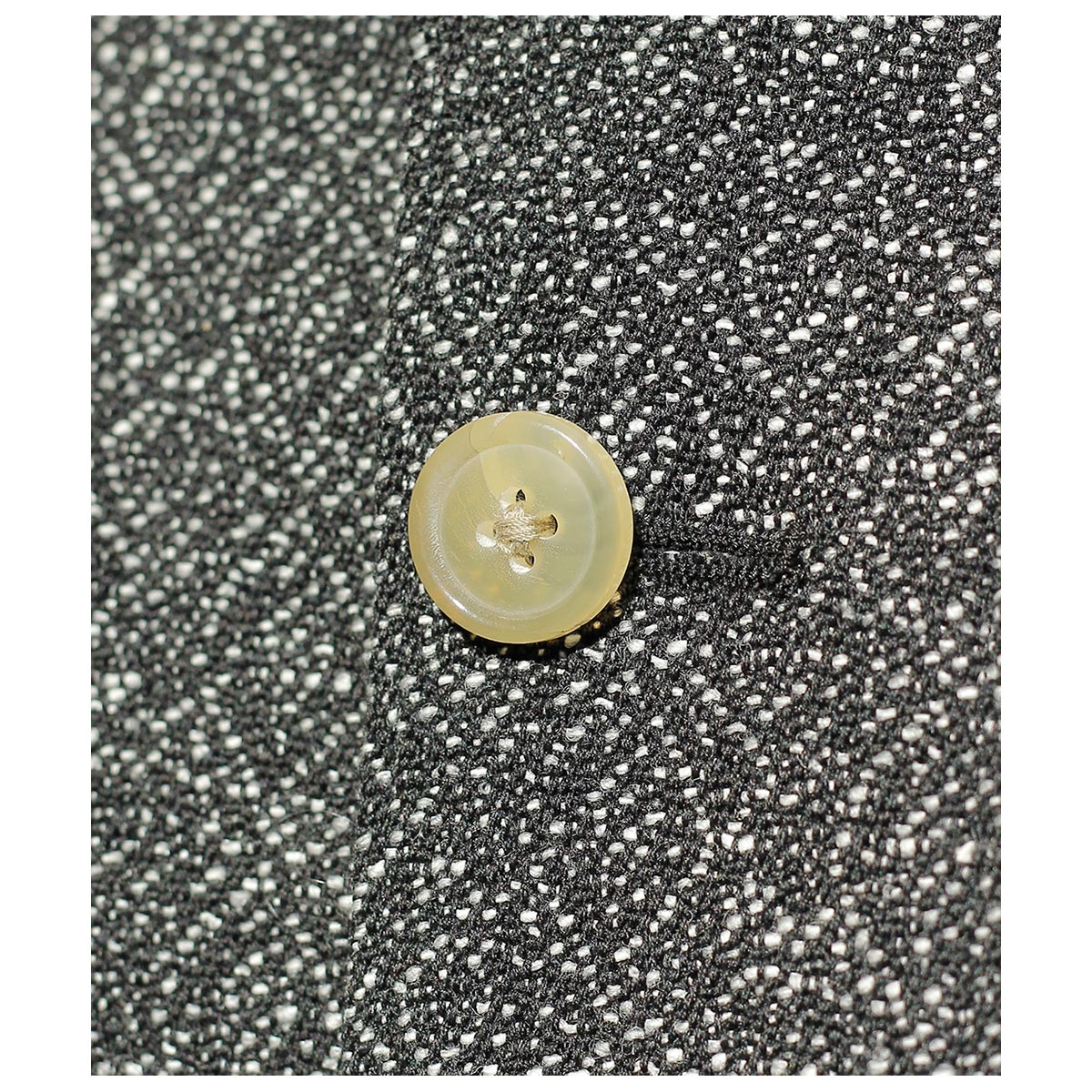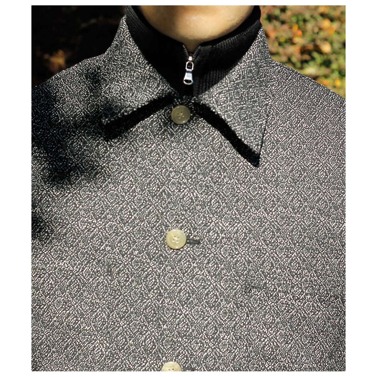 広めに取った身幅、大きめの襟元と水牛ボタンが映える美しいフロント。