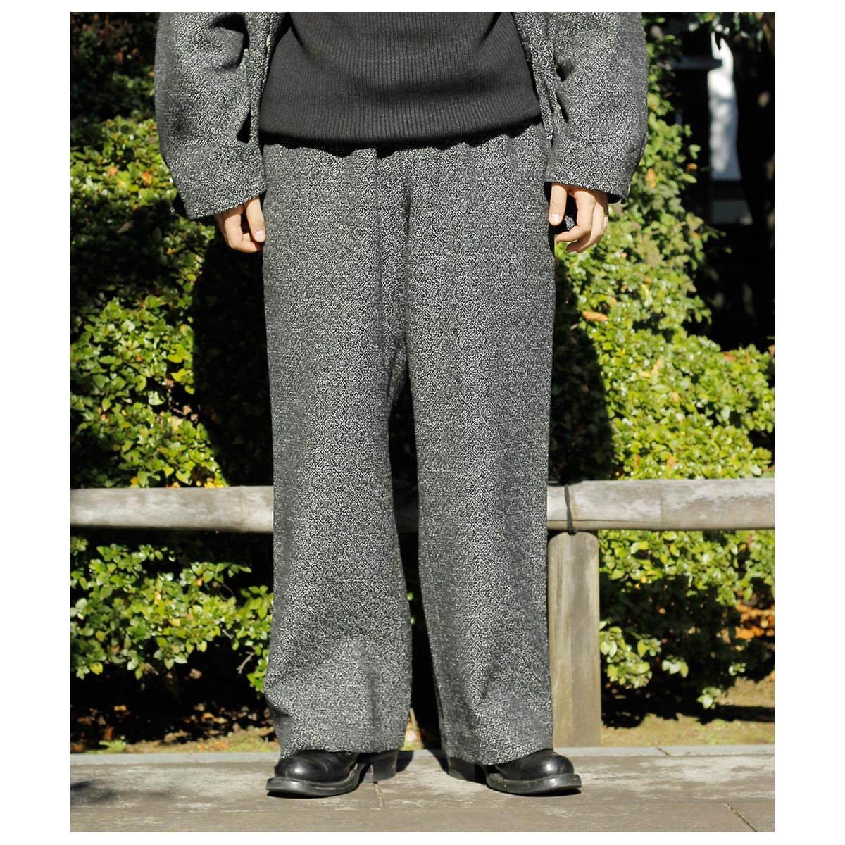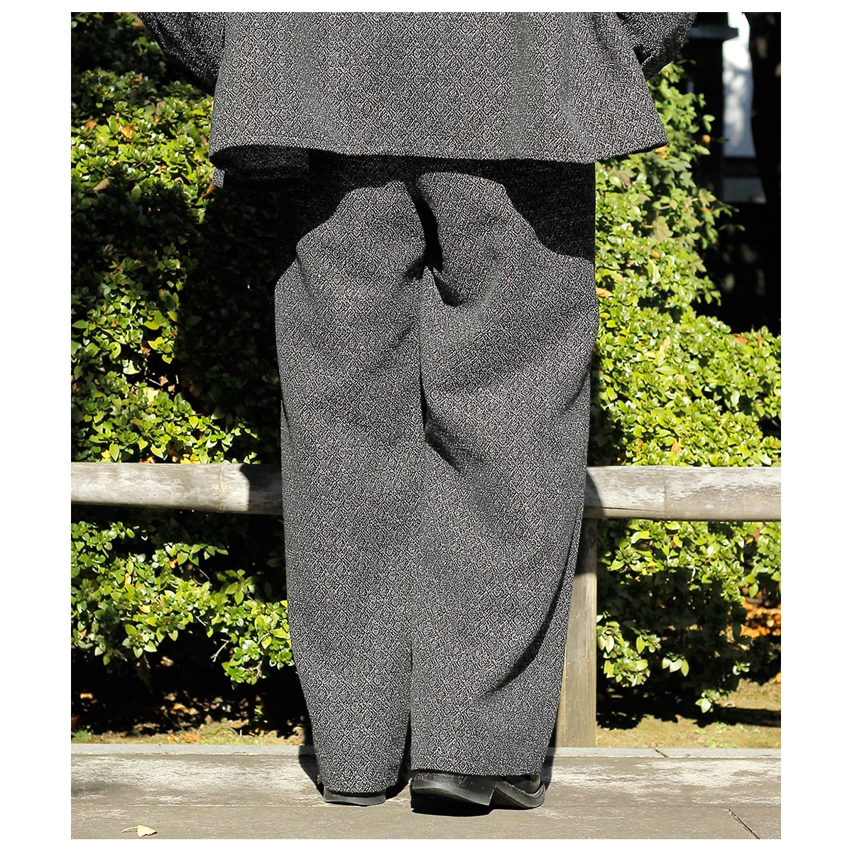 1990~2000年代に活躍し後のファッション界に強く影響を与えた某デザイナーが、世界的ラグジュアリーメゾンのために開発した“究極のミニマル”を追求したと?われる、いくつかのスラックスから着想を得たワイドシルエットのイージーパンツ。ヒップをややコンパクトに設定したワイドストレートで、タックイン・アウト問わず美しいシルエットが楽しめます。それぞれの生地が持つ特性を最大限に活かすため、ディテールは極力削ぎ落とし、ドローコードやスレキを含むほぼすべてのパーツを身頃と同素材で統一。ミニマルながらも奥行きある一本に仕上げました。