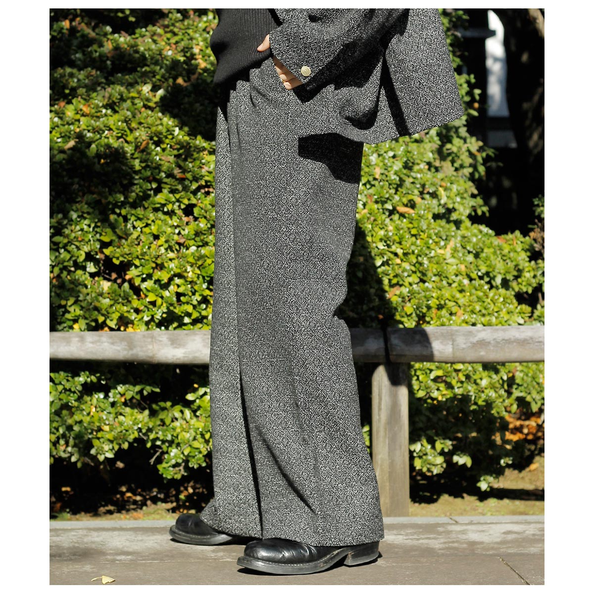 ドレッシーなスタイルにもハマる万能なパンツです。