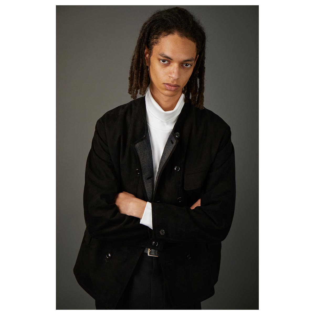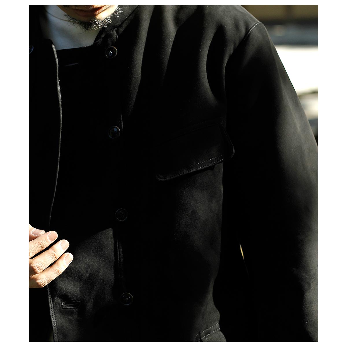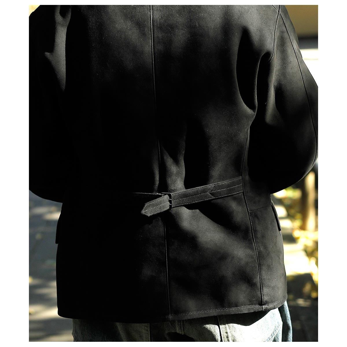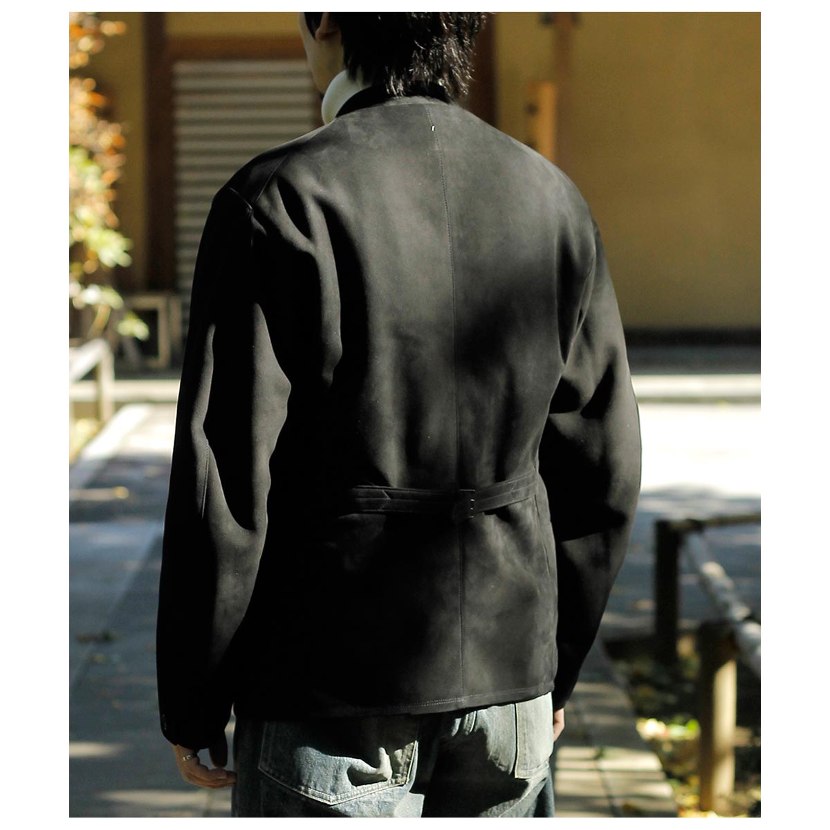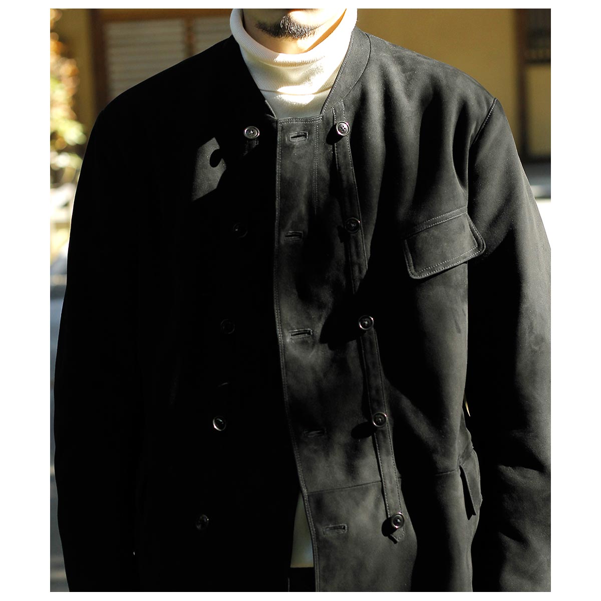柔らかく始めから着やすいゴートスエードを使用し、ややゆとりのあるボックスシルエットに仕上げた1着。