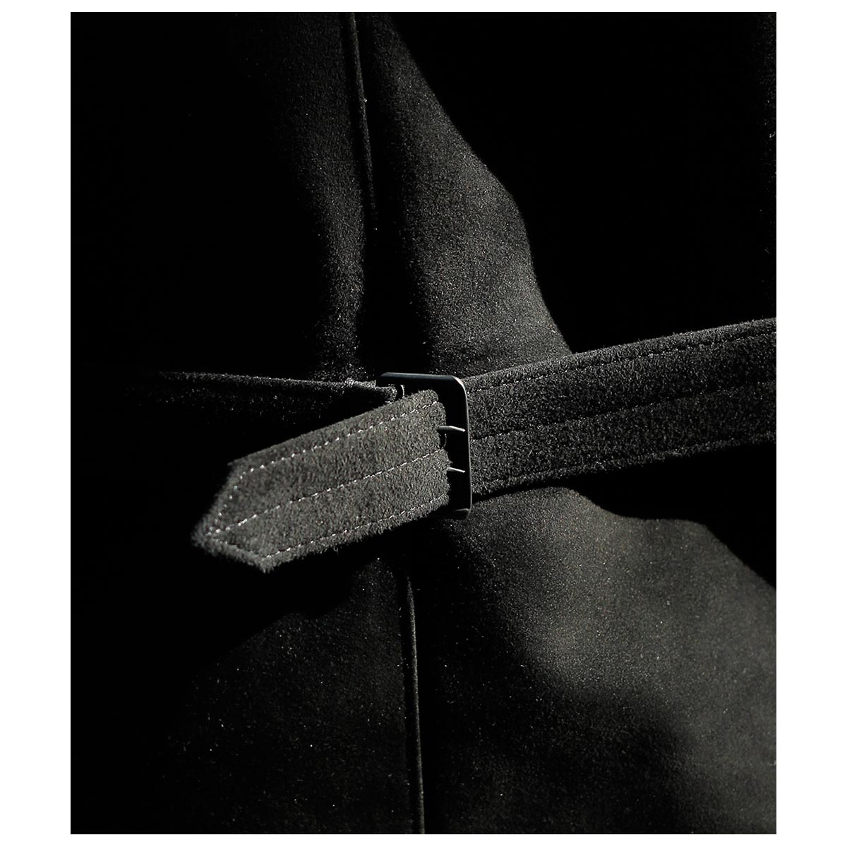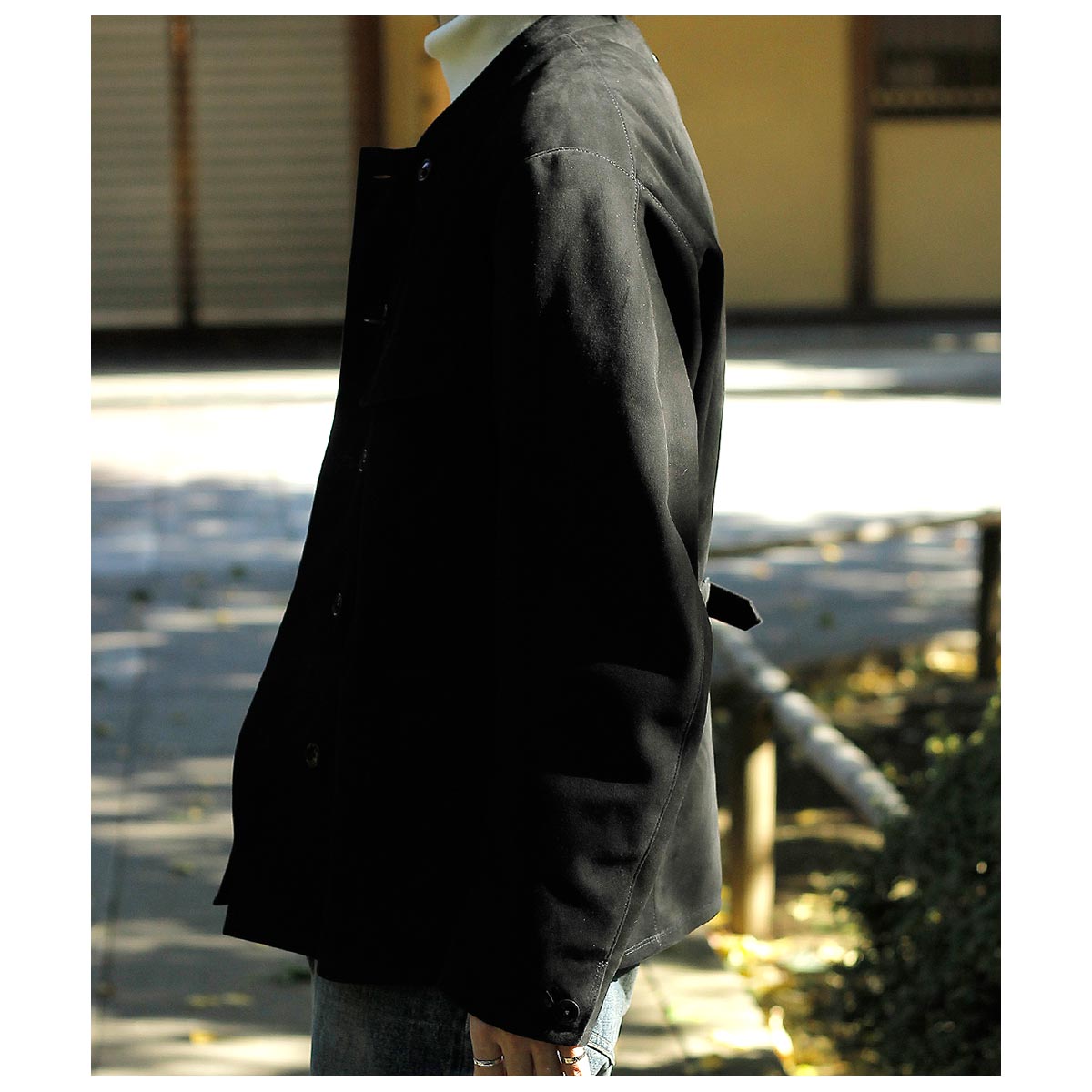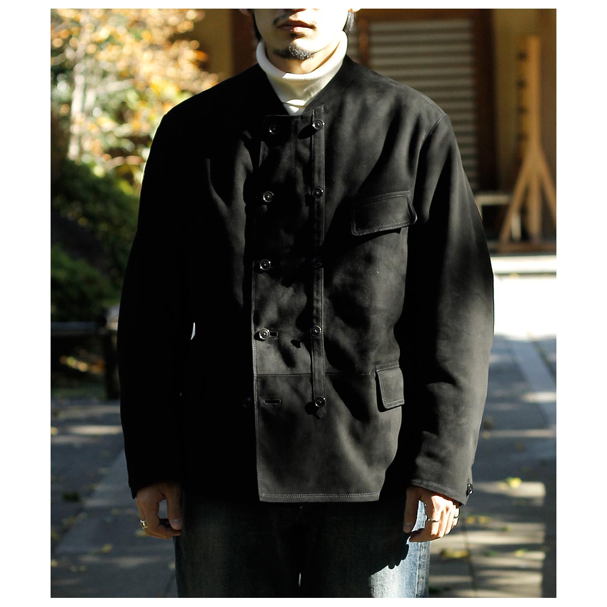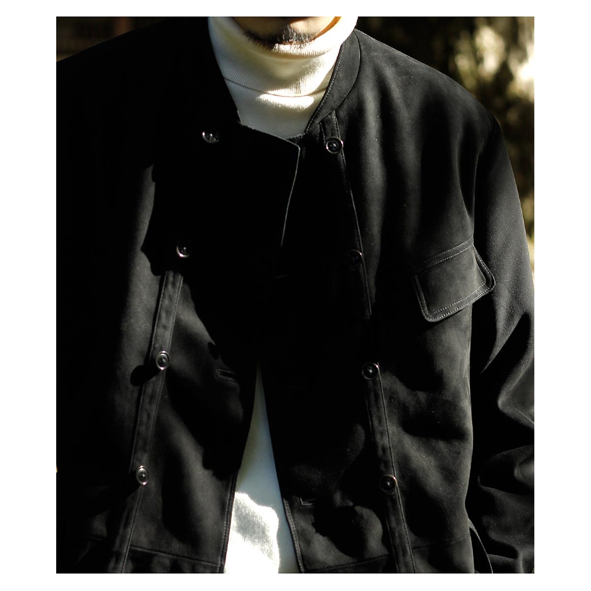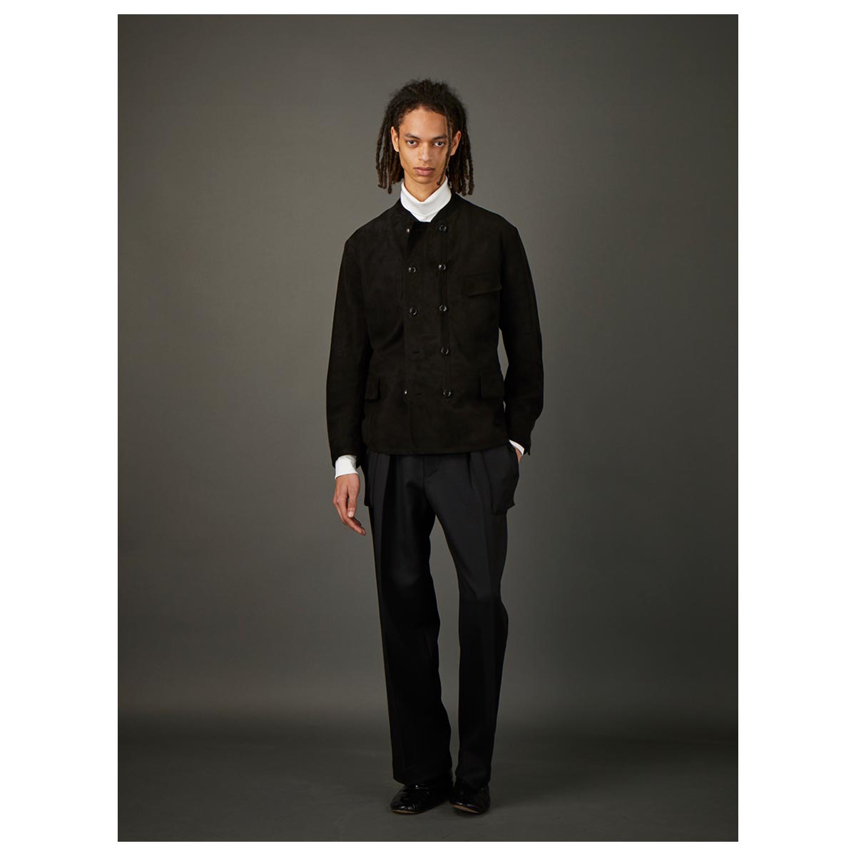 柔らかく始めから着やすいゴートスエードを使用し、ややゆとりのあるボックスシルエットに仕上げた1着。