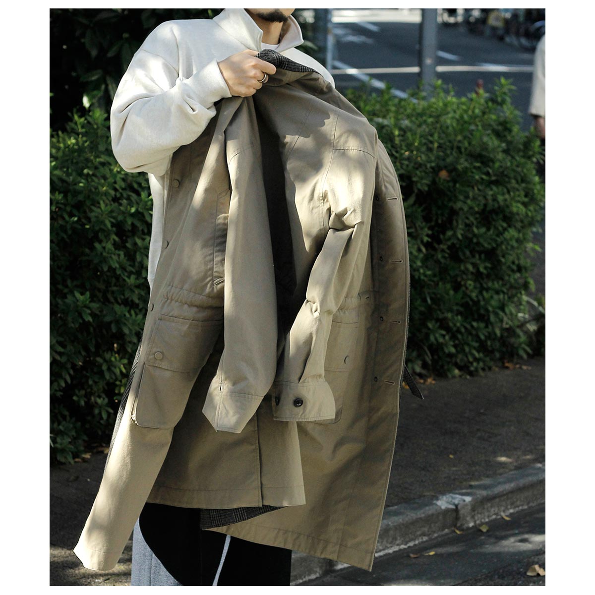 コットンギャバジン ウール/ナイロン ツイード リバーシブル ハンティングコート