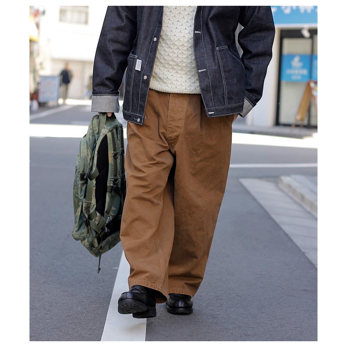 極太なウエストにで綺麗なテーパードのグランクレイルウェイパンツ。