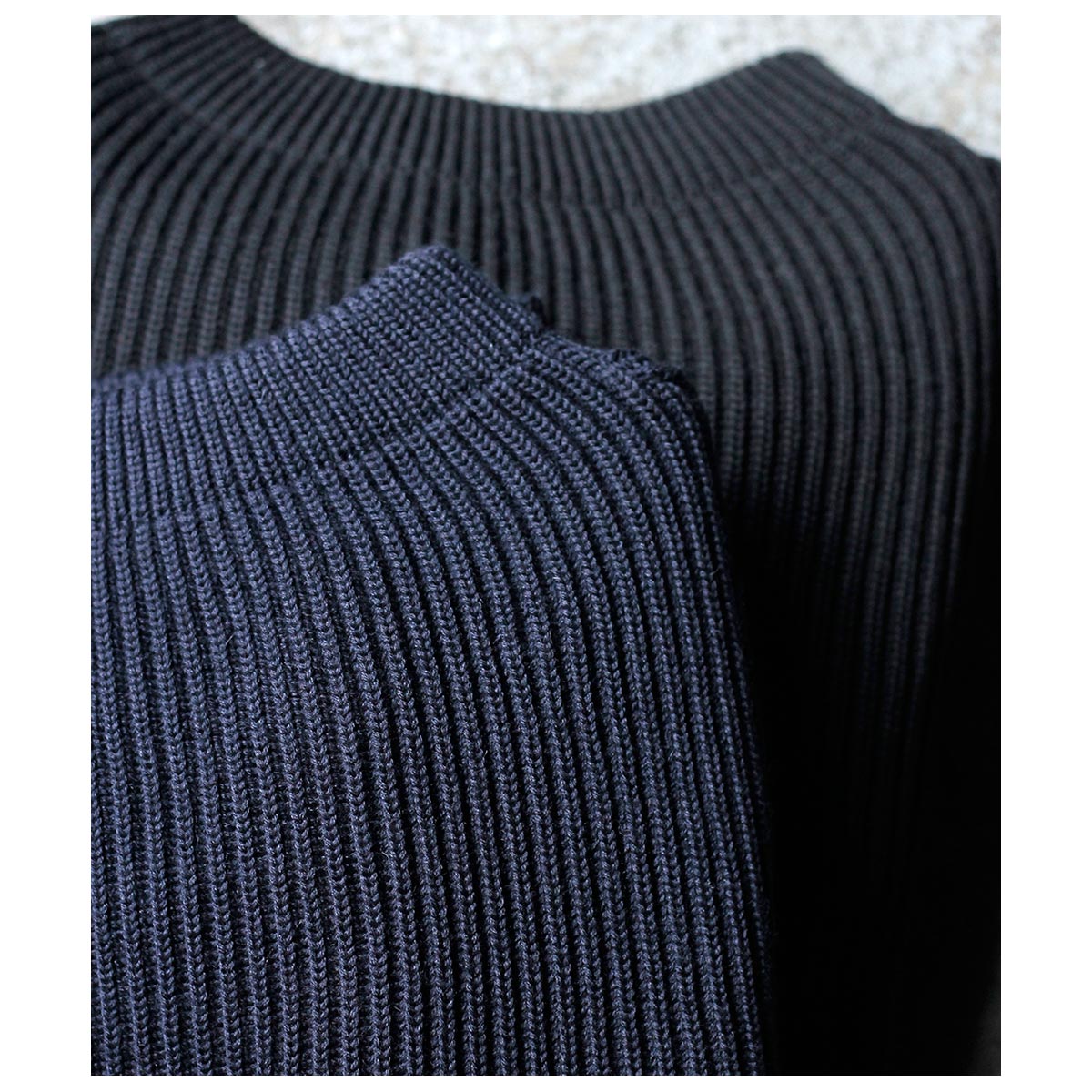 アンデルセン アンデルセン/ANDERSEN-ANDERSENのセーターは前後対称に作られており、それは海軍の古いセーターにインスピレーションを受けています。忙しい船員たちが前後を気にせず素早く着られるようにデザインされているのです。
