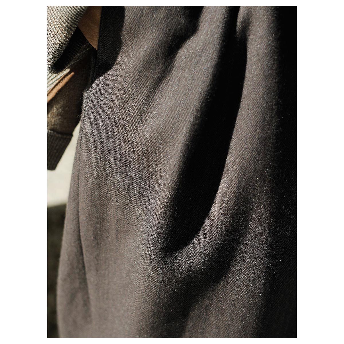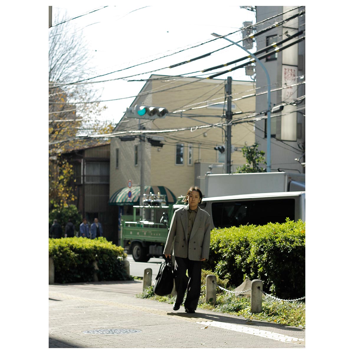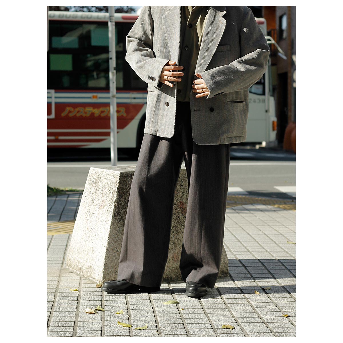 美しいグレージュがカジュアルな装いにぴったり、かっちりしすぎず、抜けのあるクリーンな表情。カットソーやニットの上から羽織ってラフに。