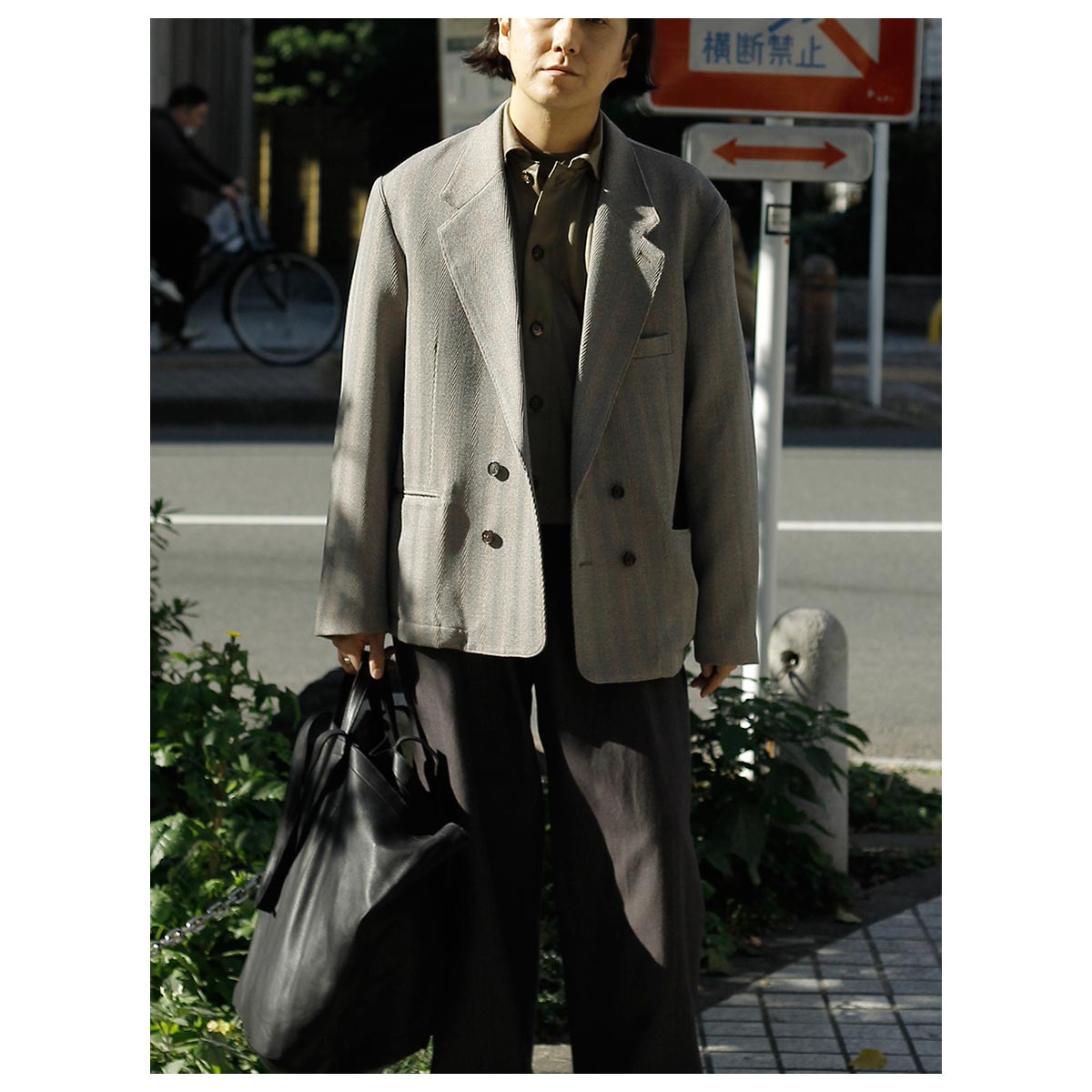 STRUCTURED DIAGONAL MELANGE WOOL DEADSTOCK PIPING DOUBLE JACKET
