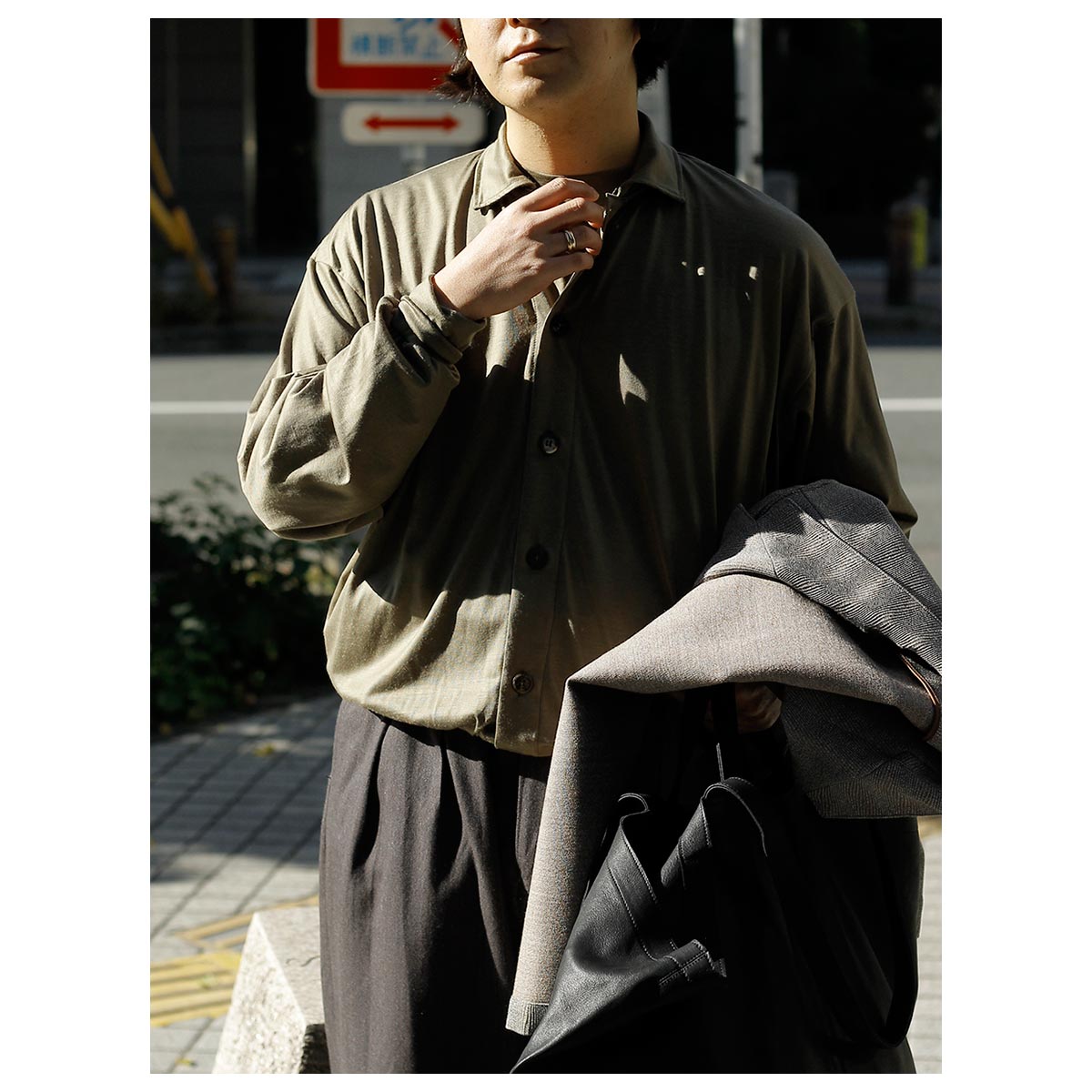 スムースな着心地は一日着ていてすごく楽なので、移動の時にもオススメ。