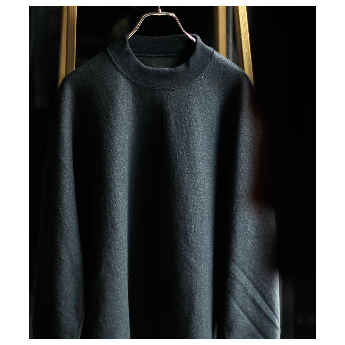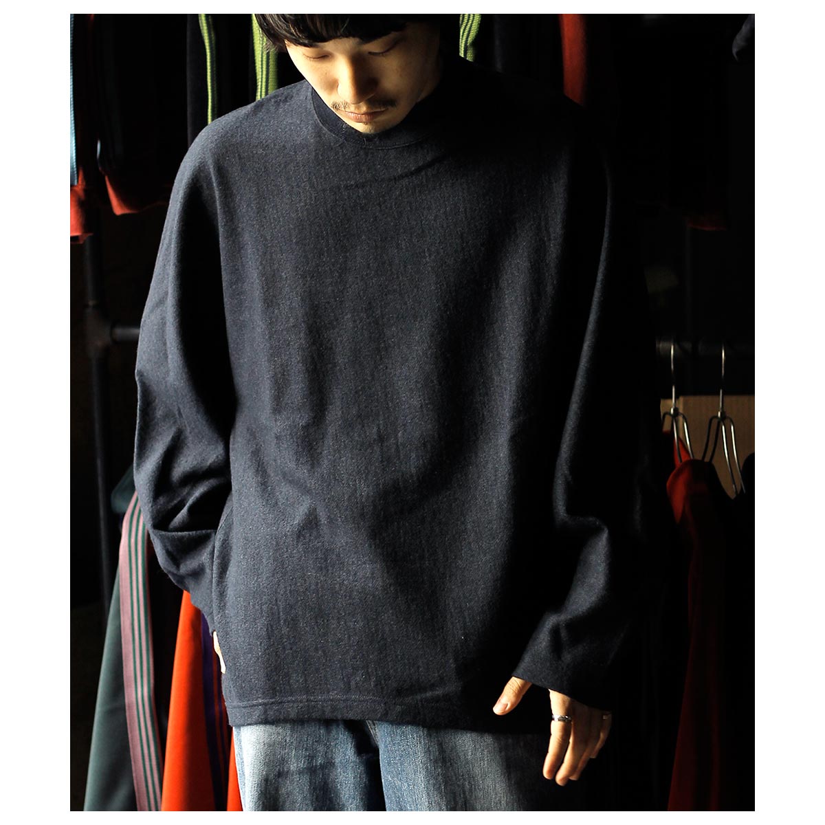 型はnonnotte定番の立体的なドレーピングロンTとなっております。 今回の素材感にとてもマッチしていると感じております。ライトメルトンのような雰囲気もありつつ、着用すると軽いそのギャップを楽しんでいただけましたら幸いです。