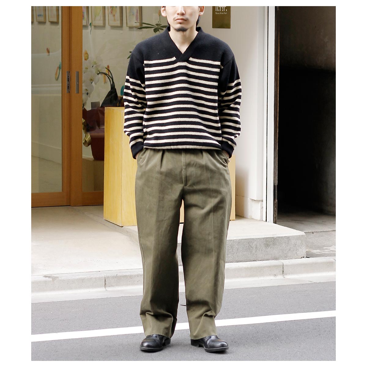 Vネックの抜け感が冬の重たさをうまく和らげてくれますね。