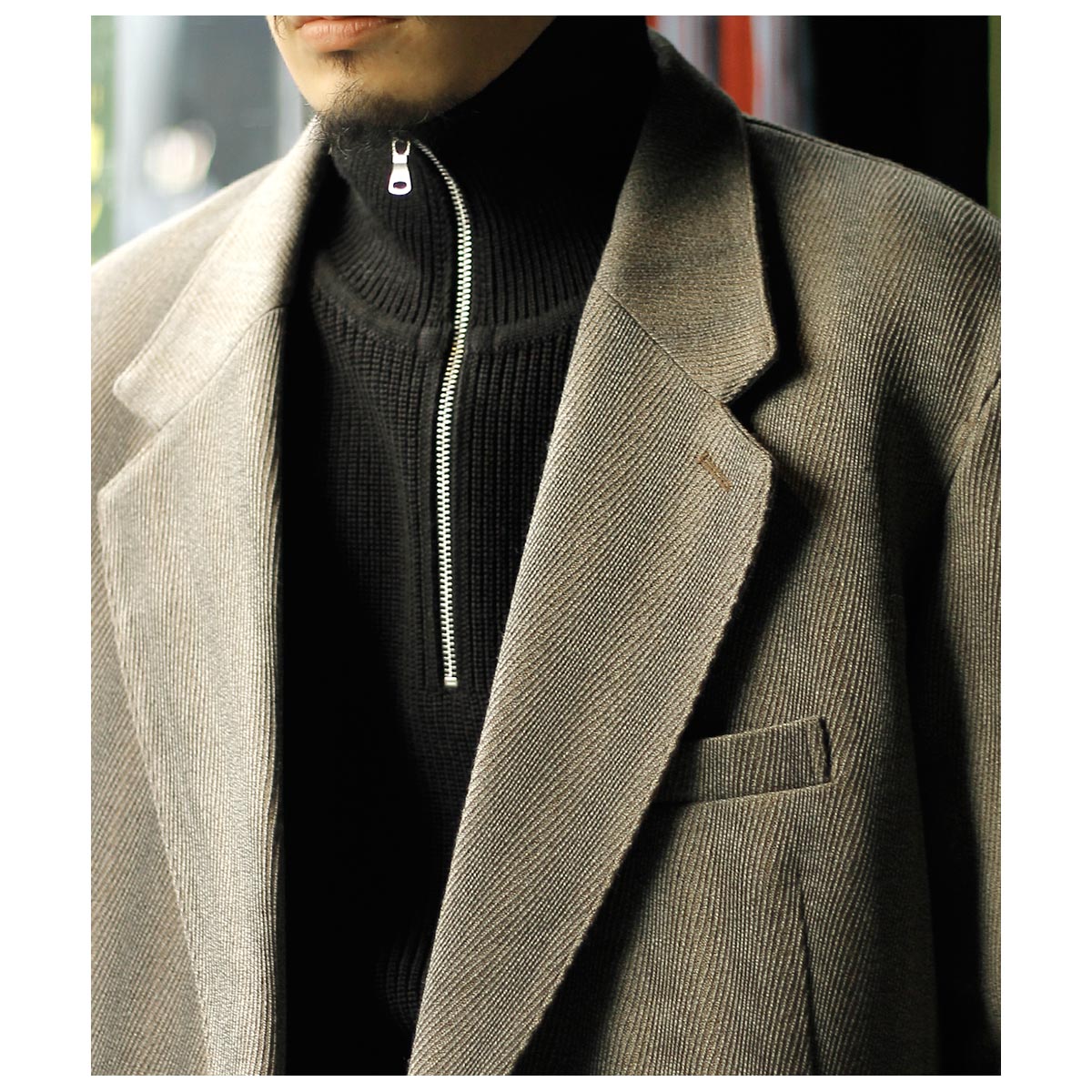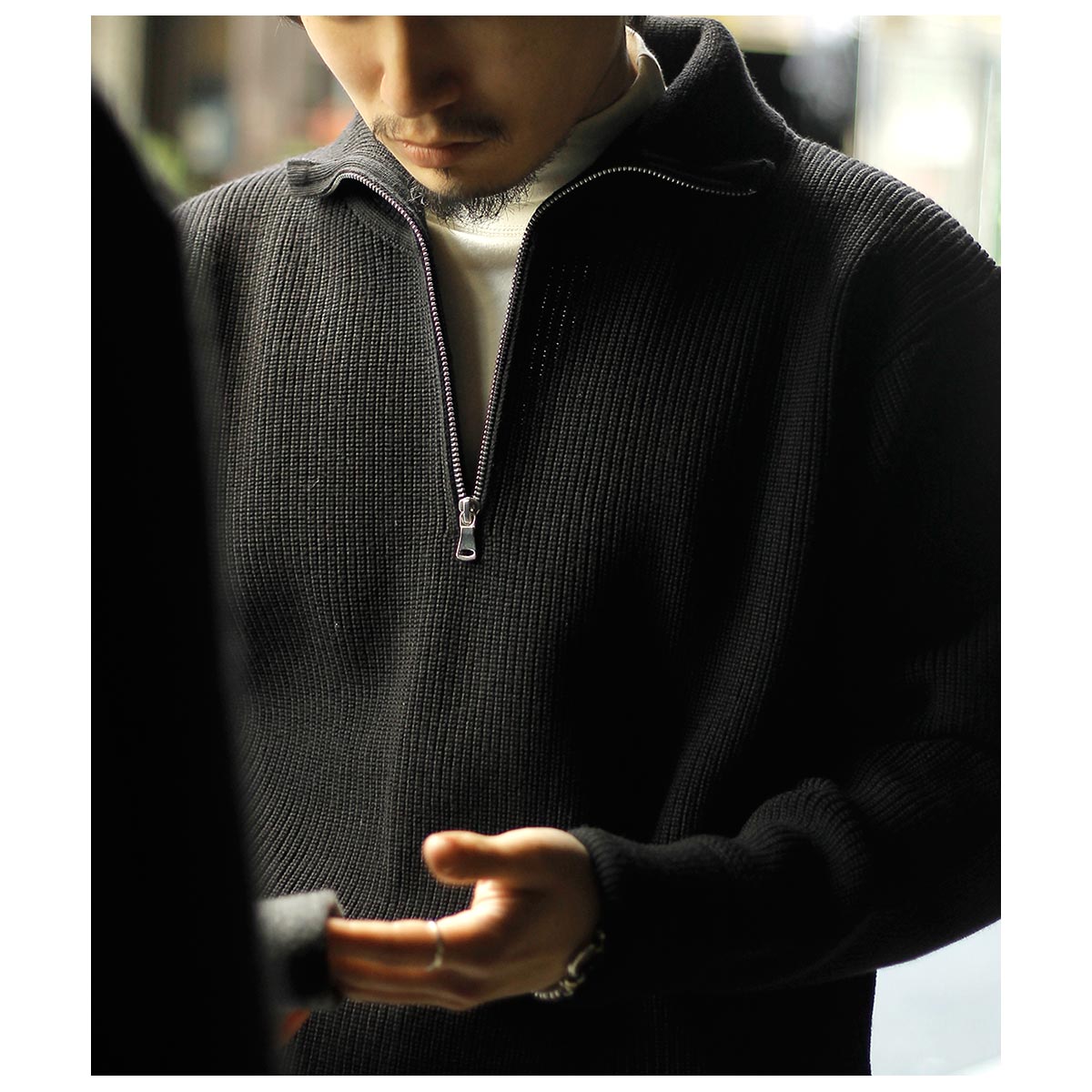 ドライバーズニットを持っている方にもおすすめしたいハーフジップ。