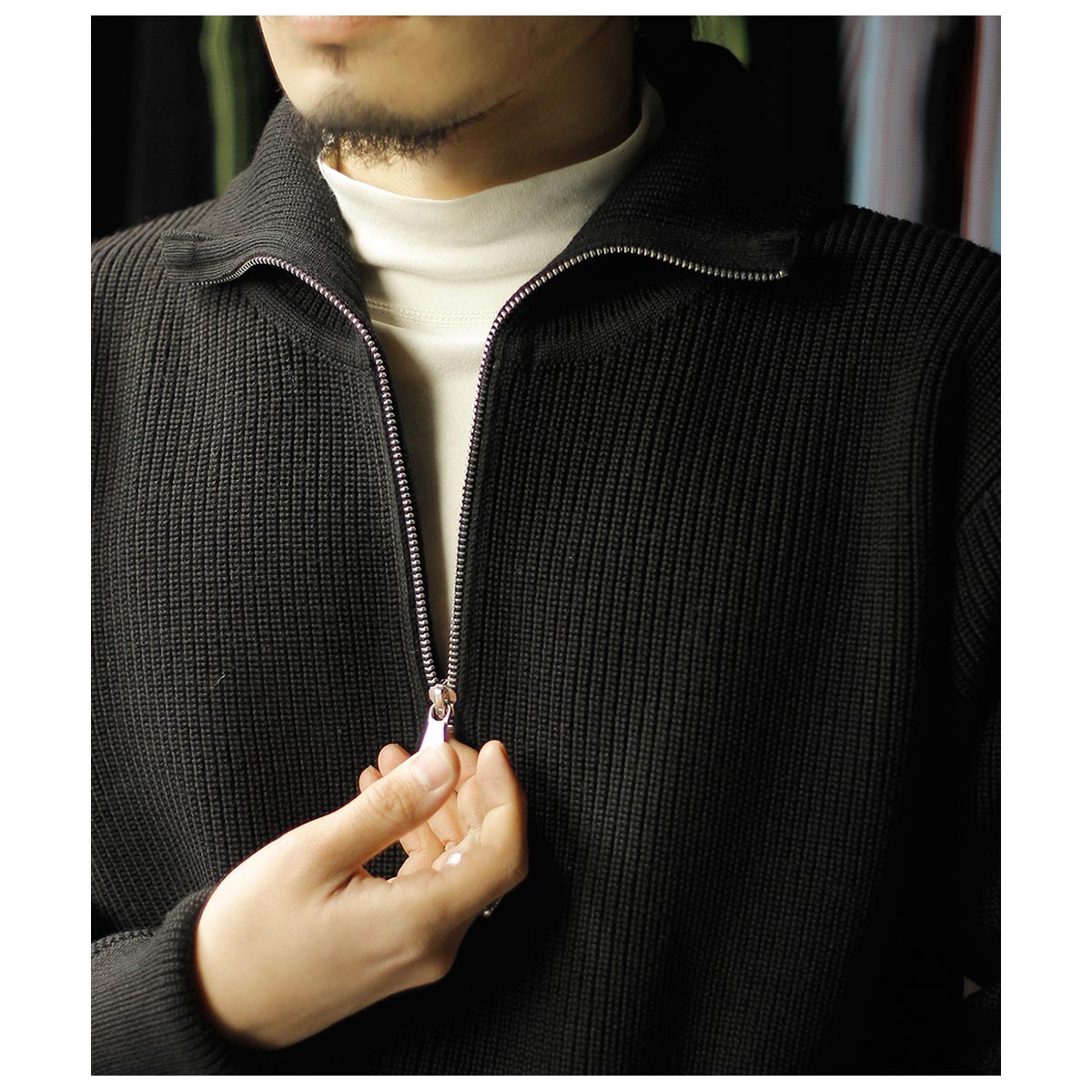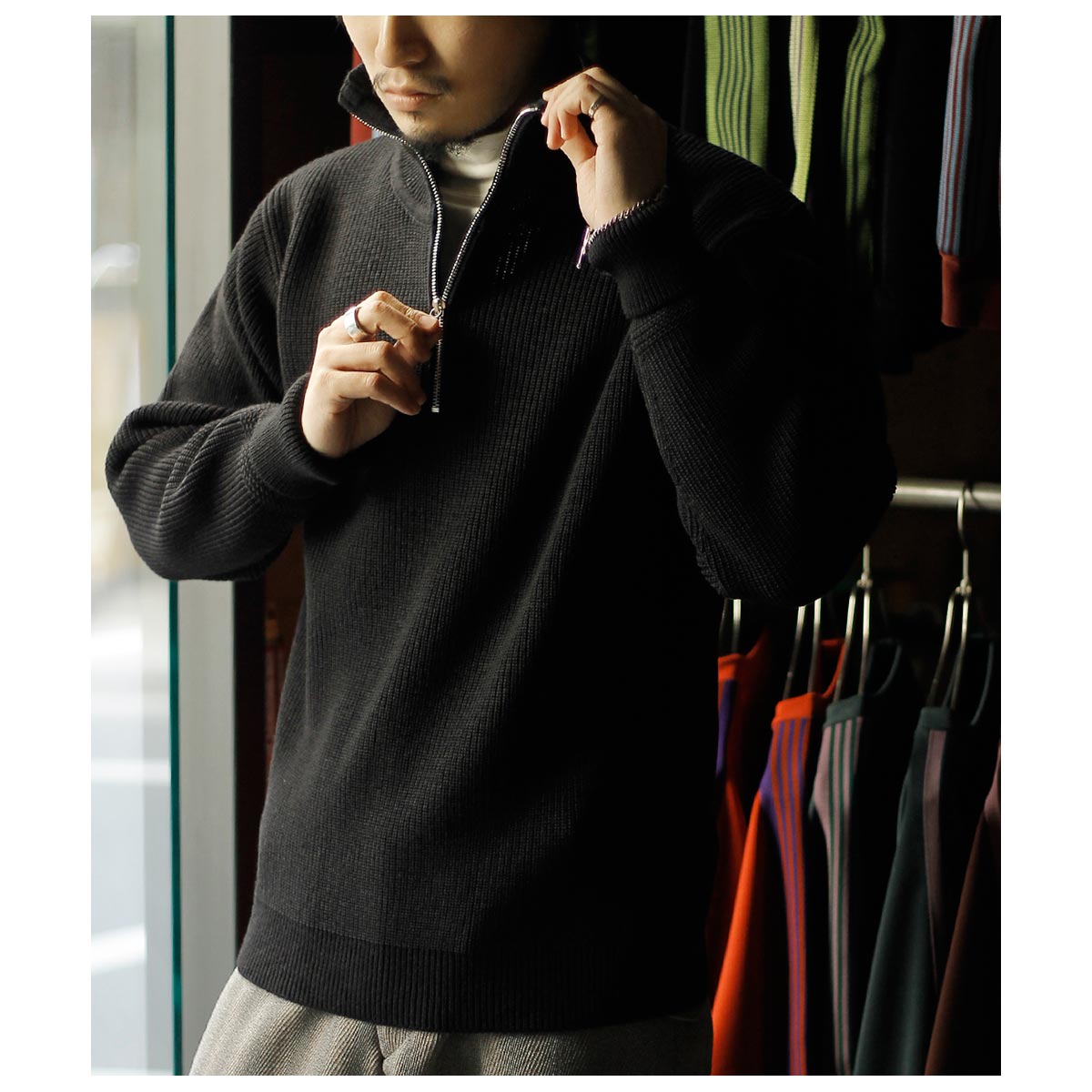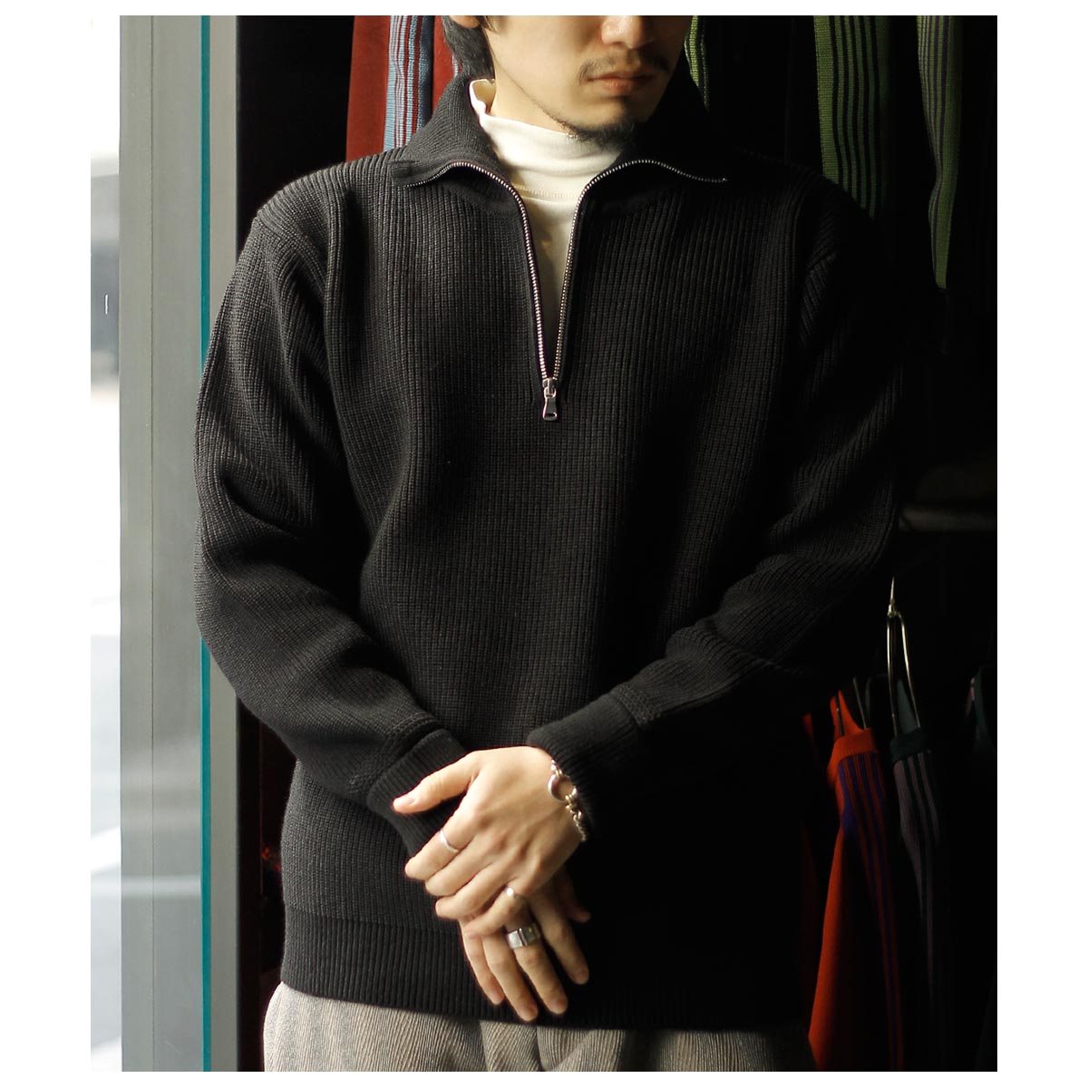 ドライバーズニットを持っている方にもおすすめしたいハーフジップ。