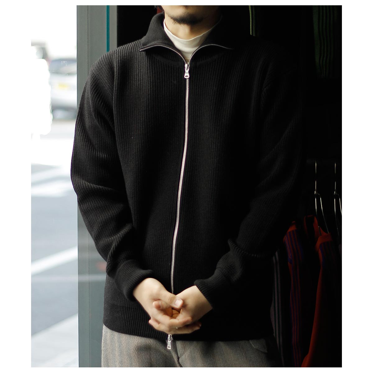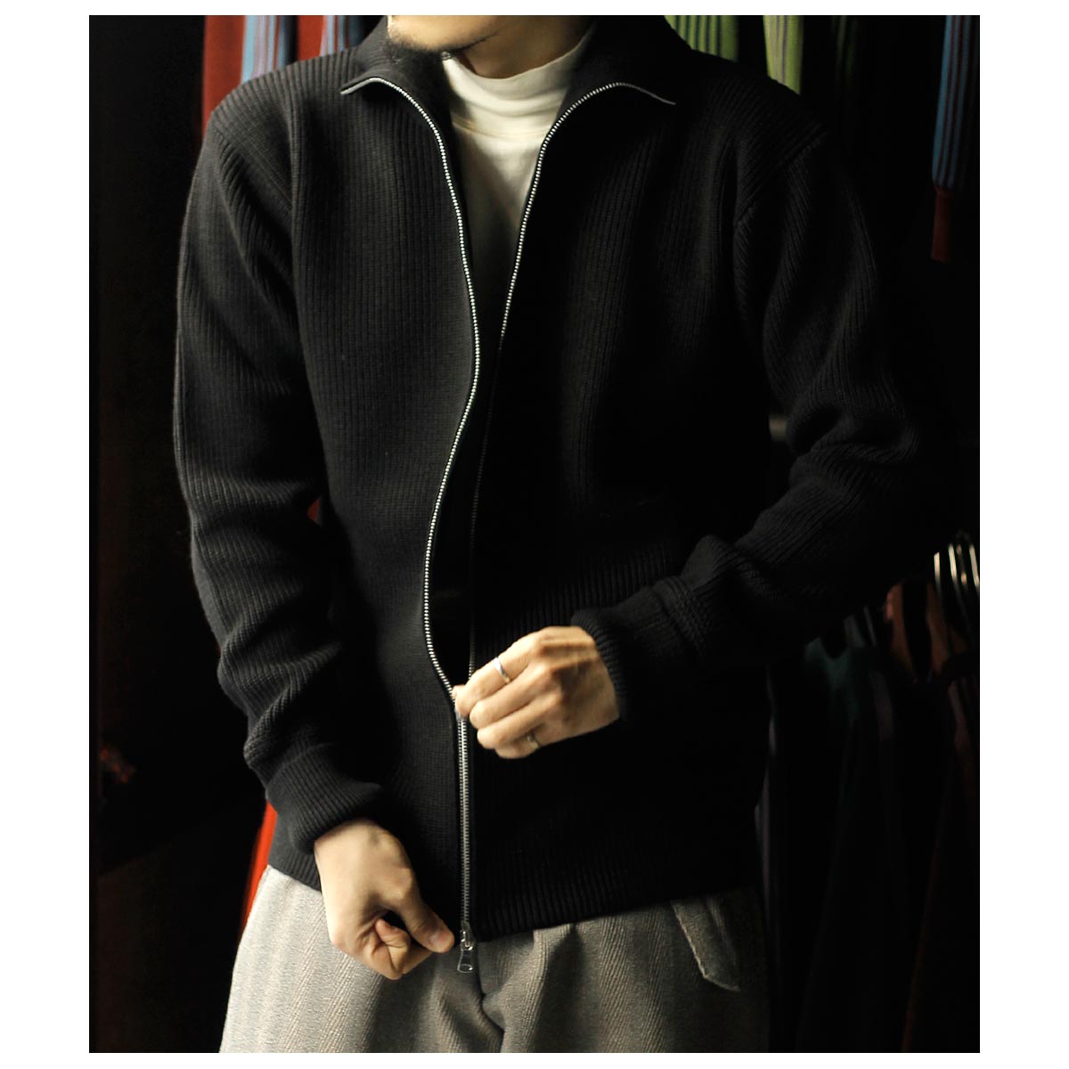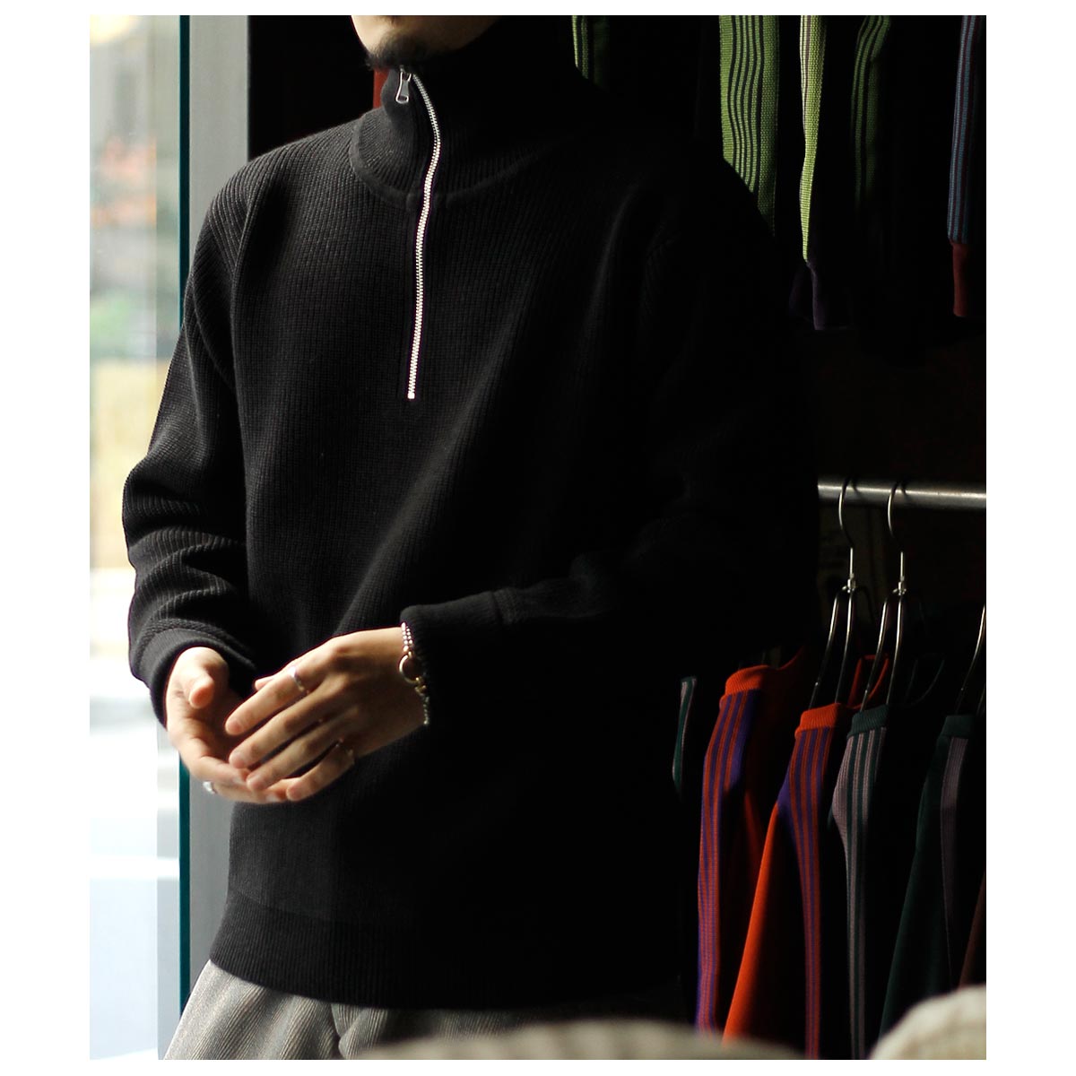 ドライバーズニットを持っている方にもおすすめしたいハーフジップ。