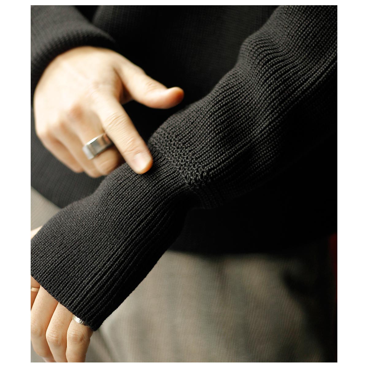 南米産のメリノウールを、イタリアで高密度且つ重厚に編み上げたアンデルセンアンデルセンのオリジナルニットを使用しています。