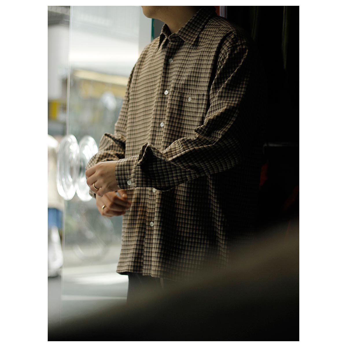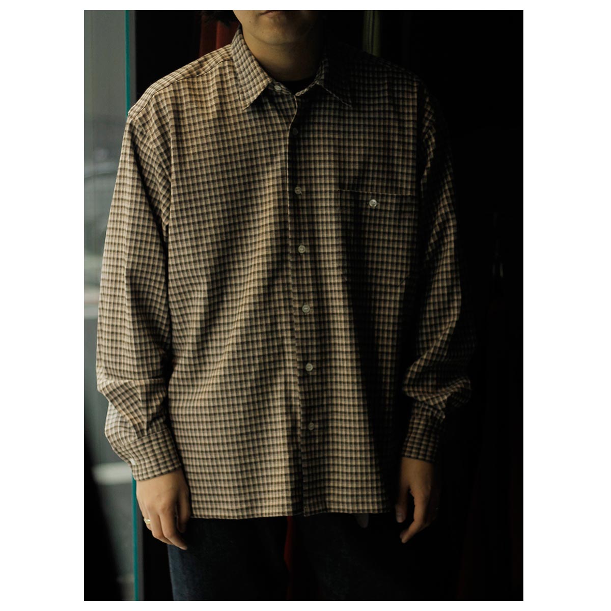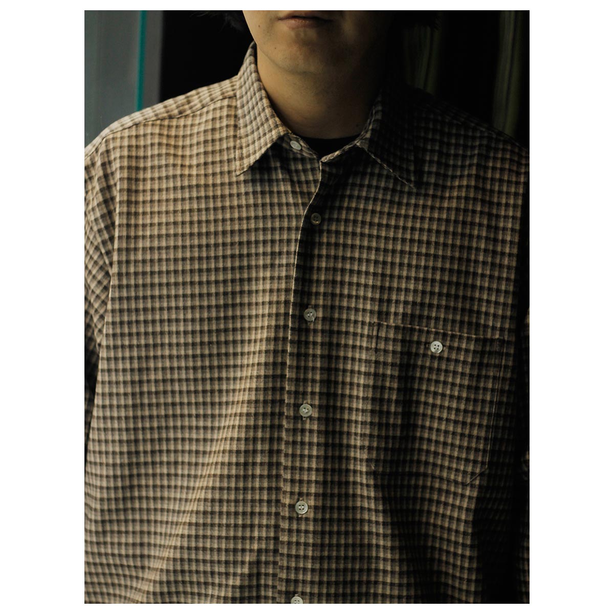 スクエアシルエットのレギュラーカラーシャツ。