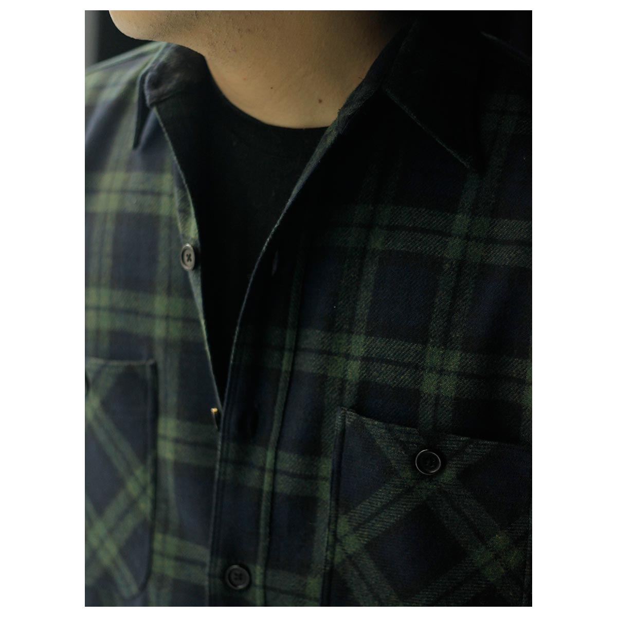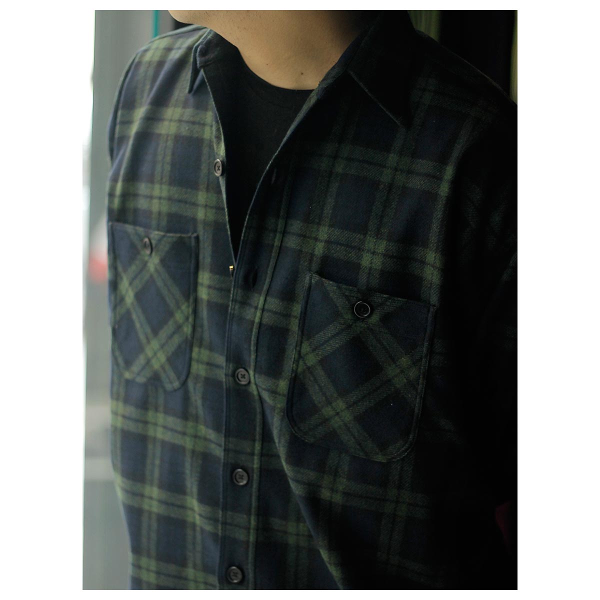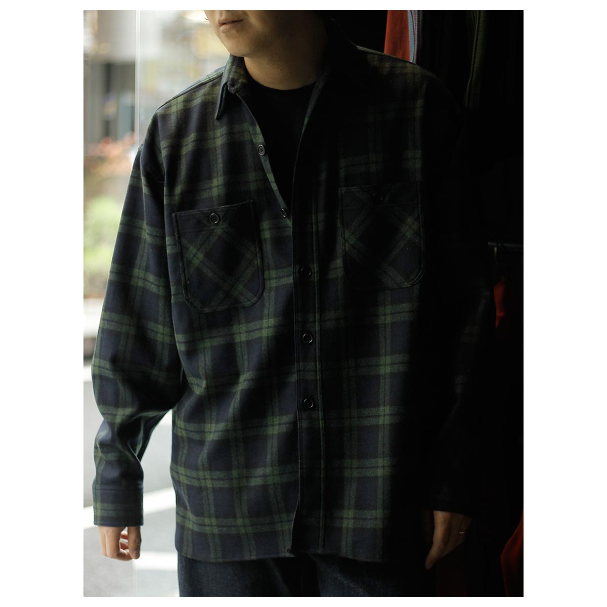別注で作製したブラックウォッチのワークシャツ。