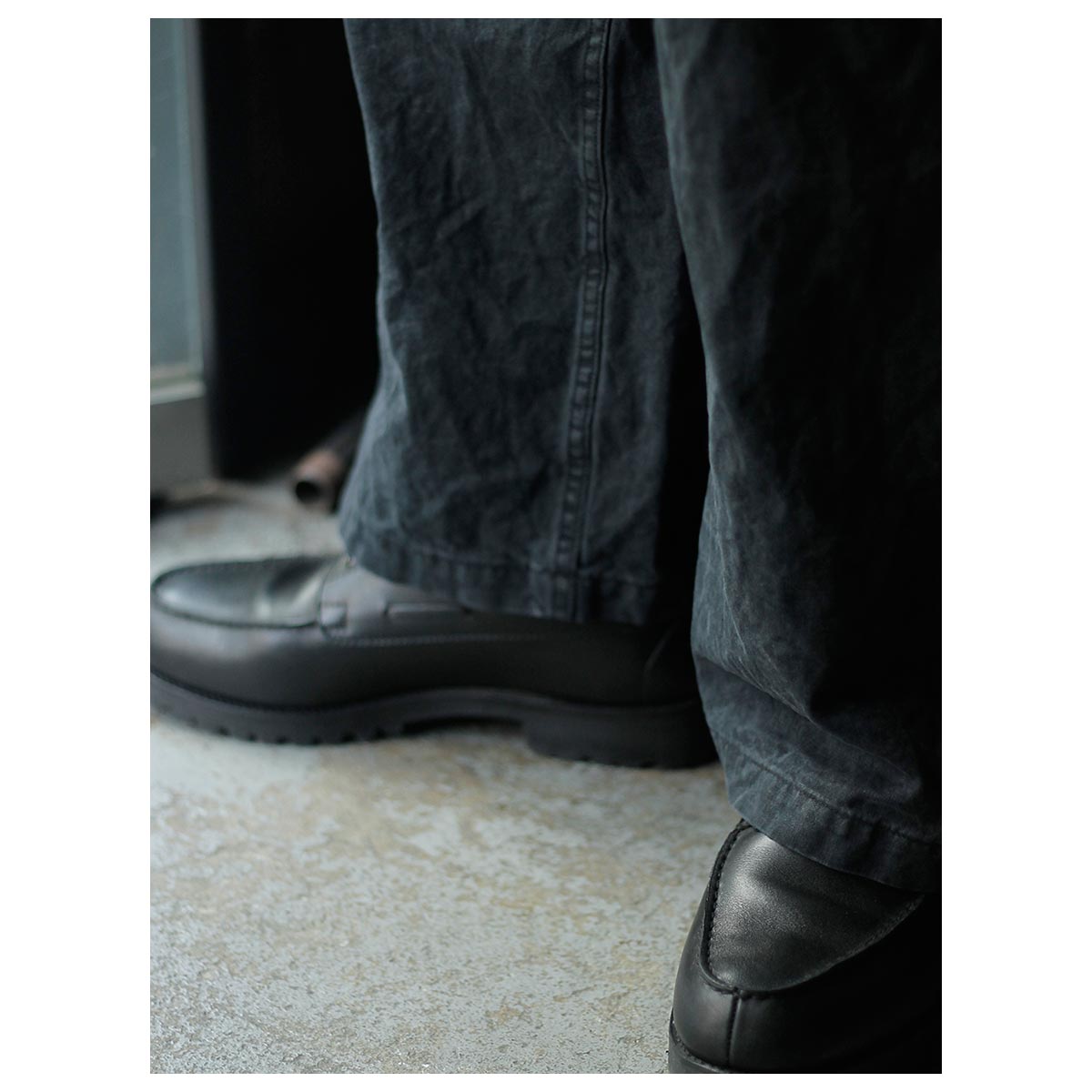 無骨さを前面に出すのではなく、シルエットと分量感で今の空気に整えています。