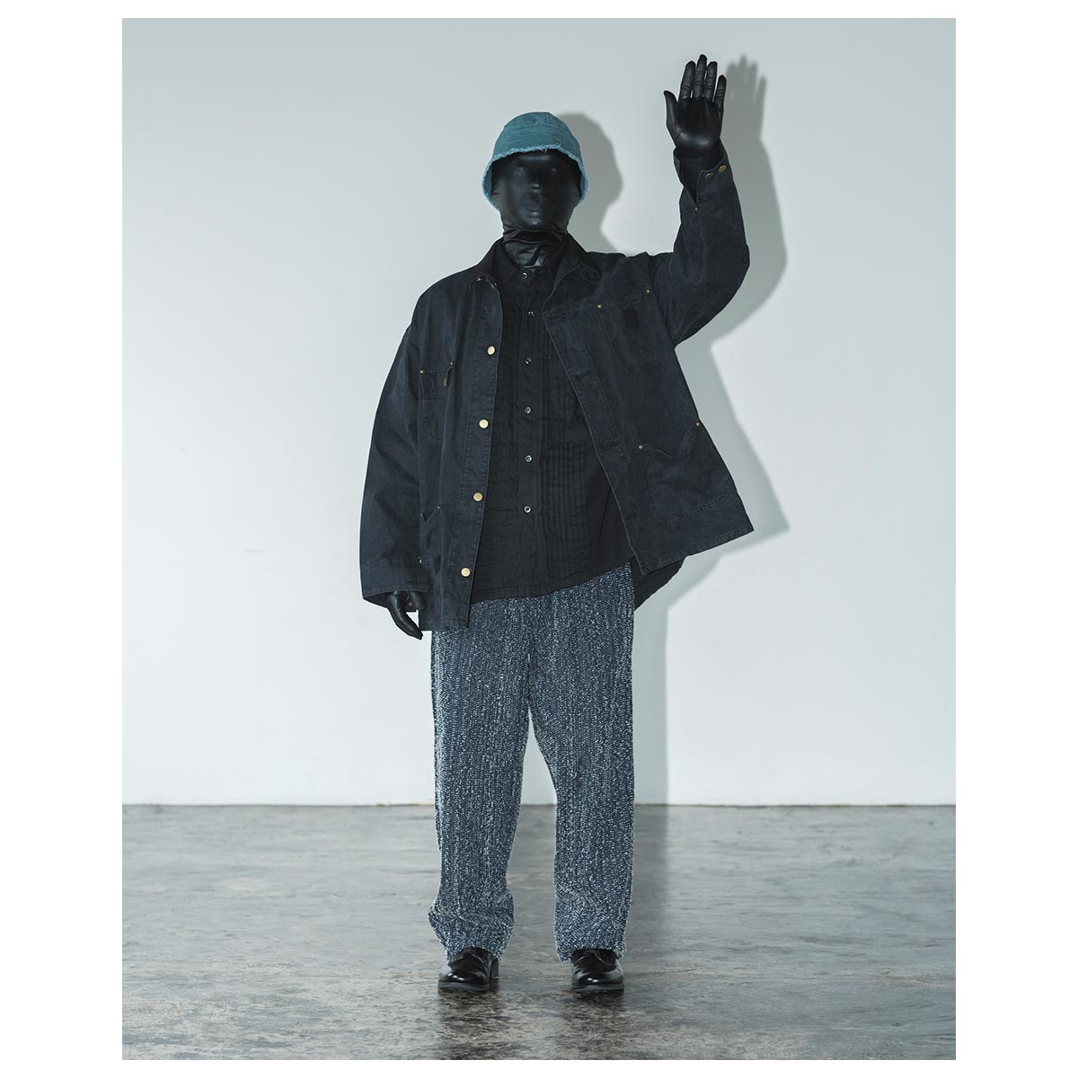 無骨さを前面に出すのではなく、シルエットと分量感で今の空気に整えています。