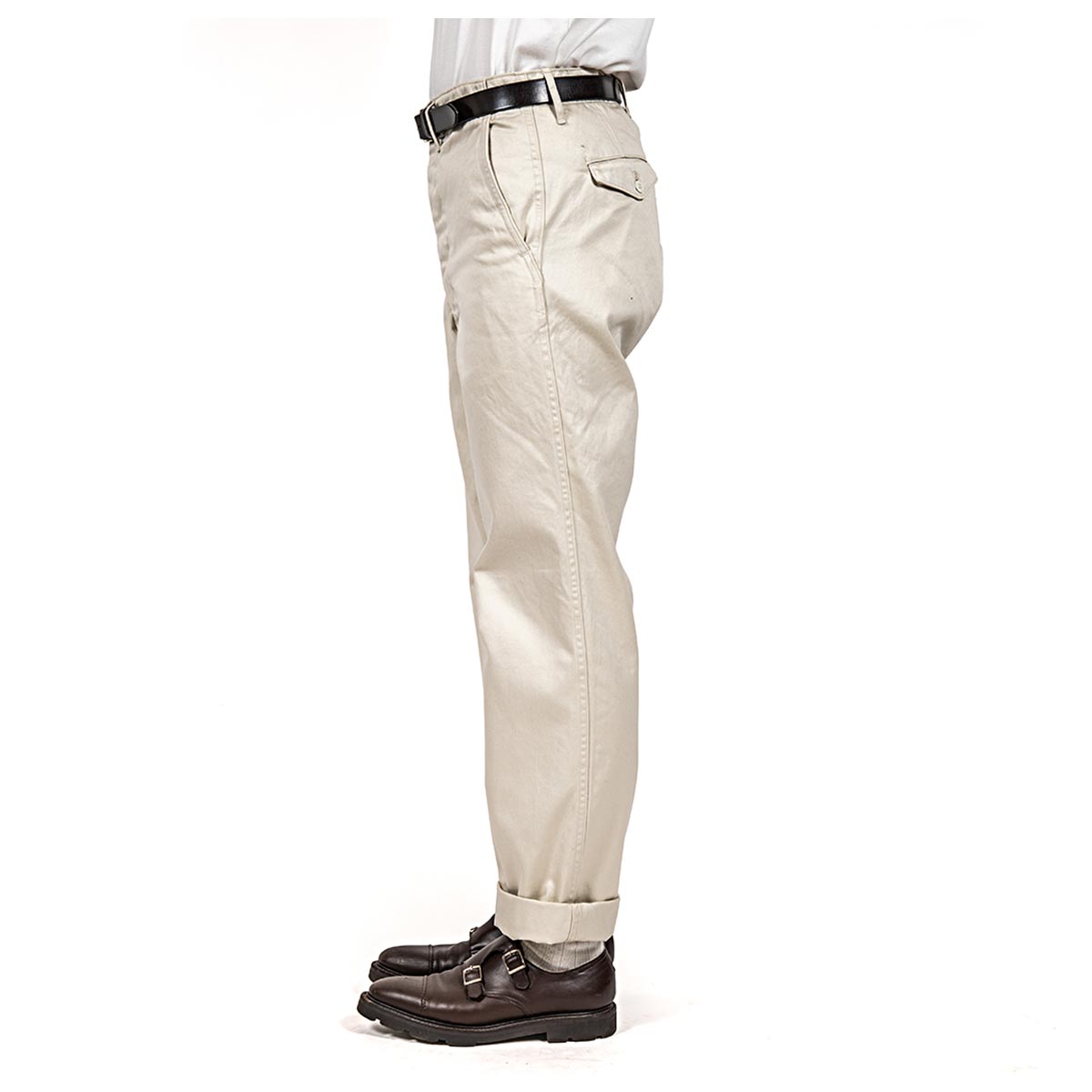 チノはWORKERS 別注のUSMC Khaki が一色。少し黄土色っぽい、ベージュではない。