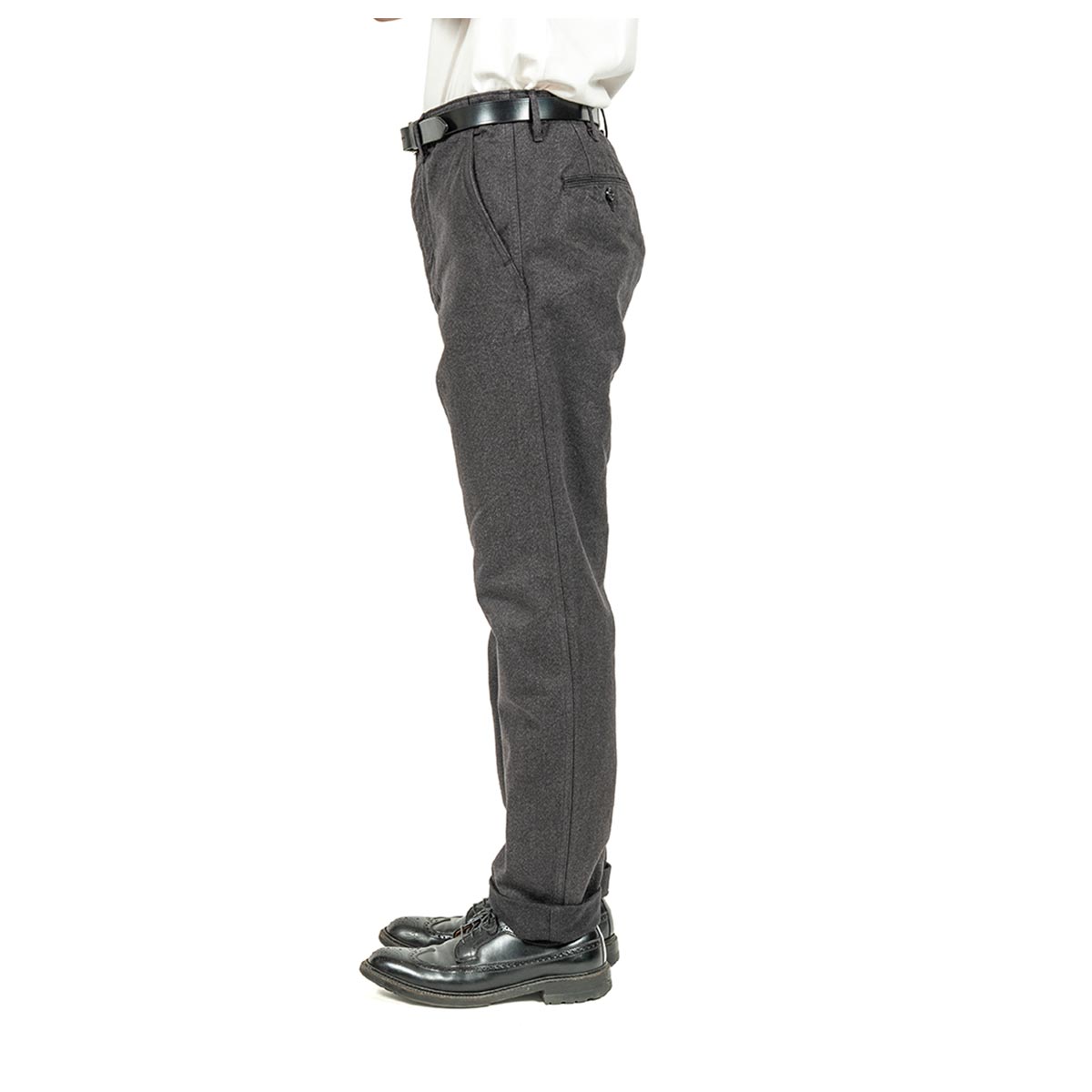 Slim/ 裾幅18 センチは一度お休みしようか?と思いつつ、やはり根強い支持があり26SSもリリ?ス。 同じようで、延々アップデートしていて、くるぶしから先は18センチ幅ですが、ふくらはぎは寸法を出す。腰回りも作り始めた10年ほど前よりはまた上がだいぶ深くなりました。 これで「スリムでも出来る限り窮屈にならない、かつオフィスカジュアル的に使いやすいシルエットを目指しています。