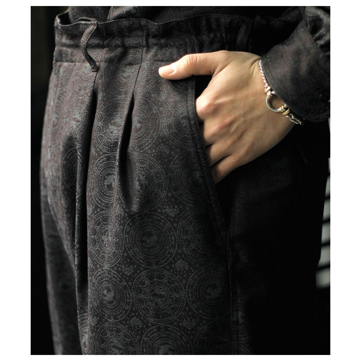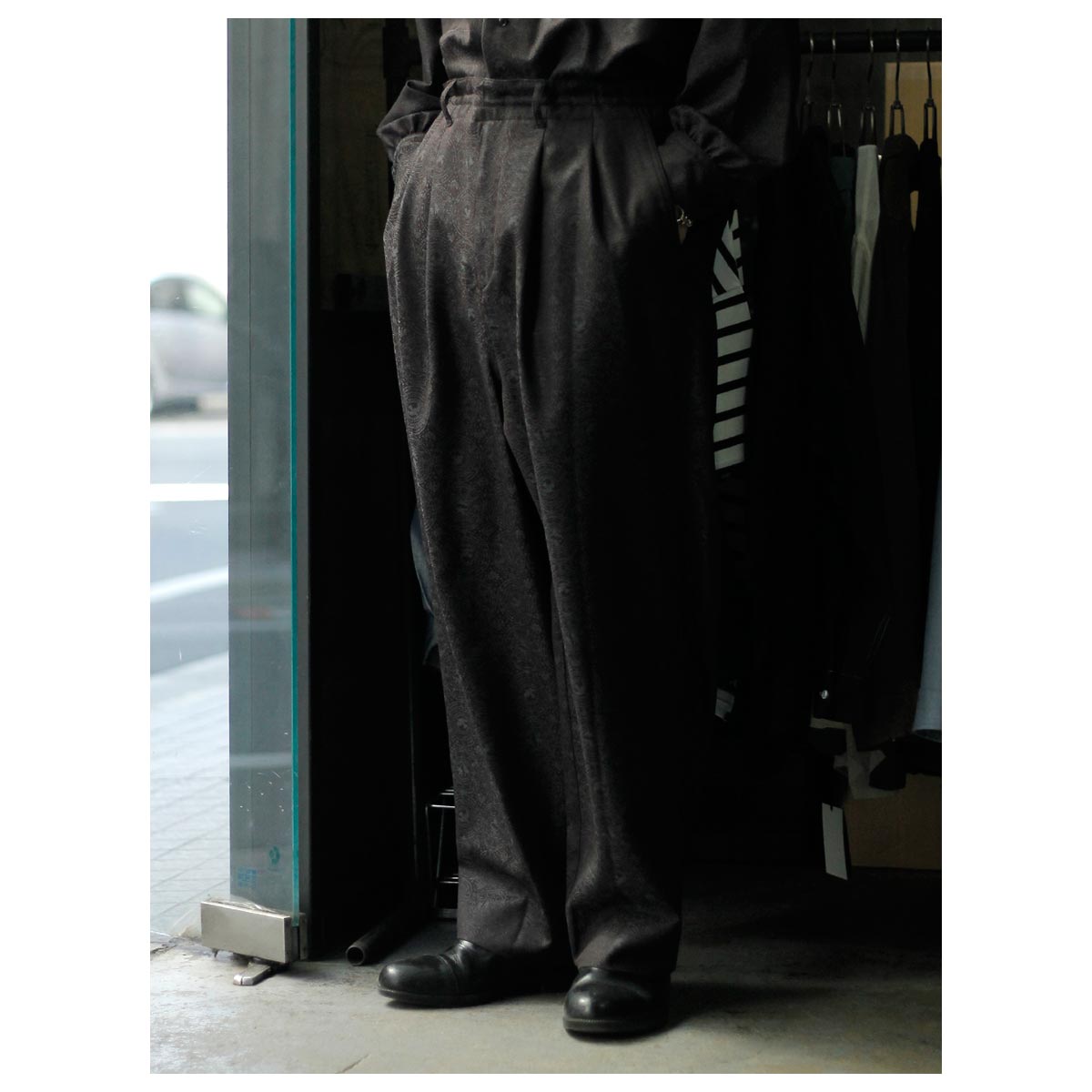 Super140’シャドージャガードのドレープが陰影をつくり、無地では味わえない奥行きを感じさせます。 ワイドでありながらも、落ち感のおかげでボリュームが抑えられ、夏の軽やかさと凛とした佇まいを両立。 イージーさとエレガンスの境界線にあるパンツとして、夏のワードローブに新しい選択肢を。 ぜひ、この静かな存在感をお試しください。