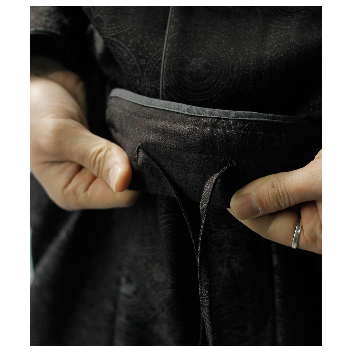 反射の差を計算した織りと色設計によって、一見無地に見えるものの、動きや光の加減によって柄が浮かび上がる技法。