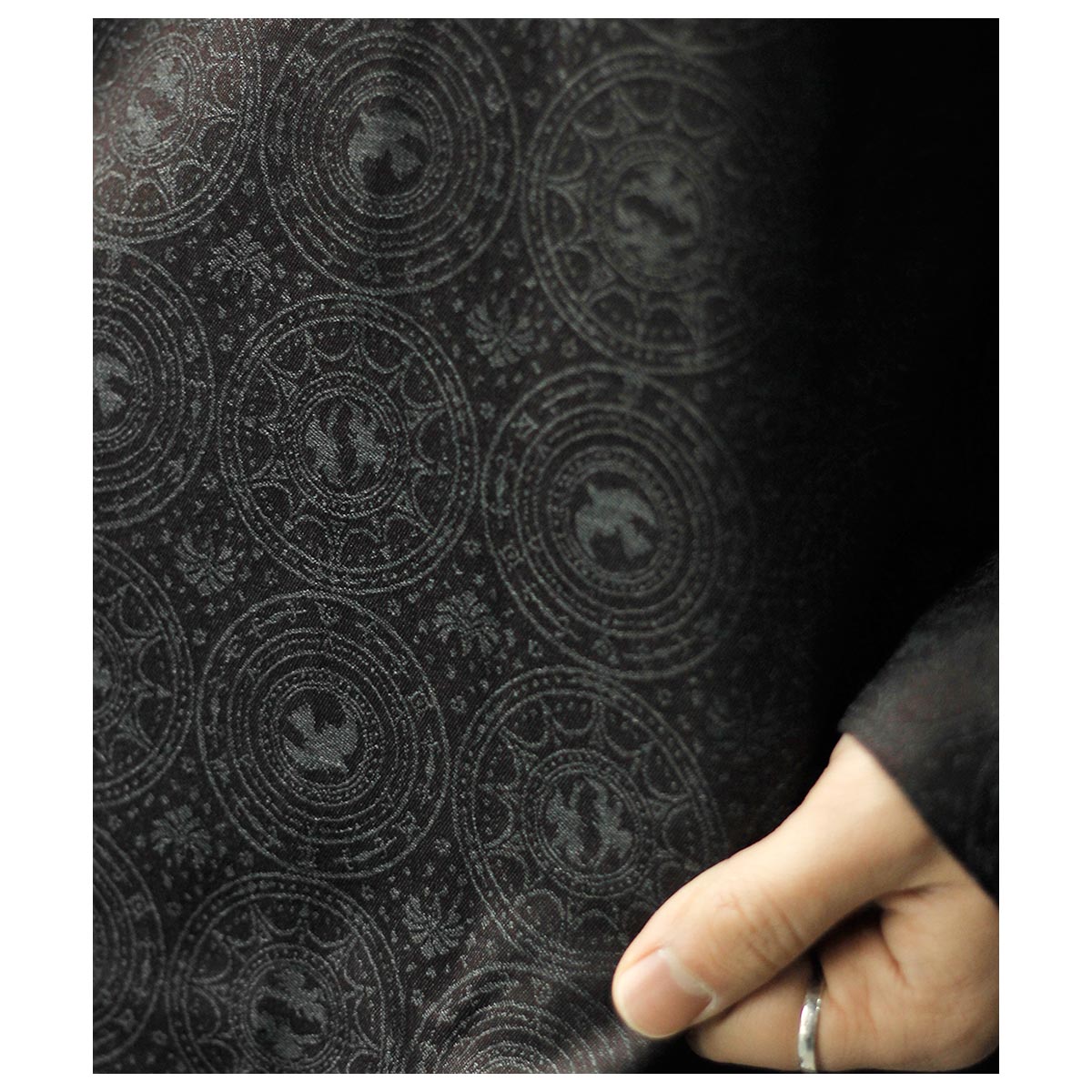 動きや光の加減によって、柄が浮かび上がったり、無地のように見えたりする