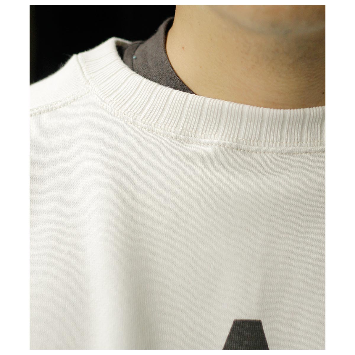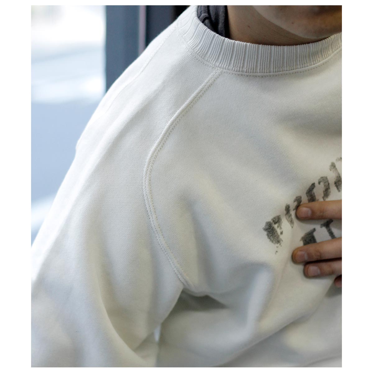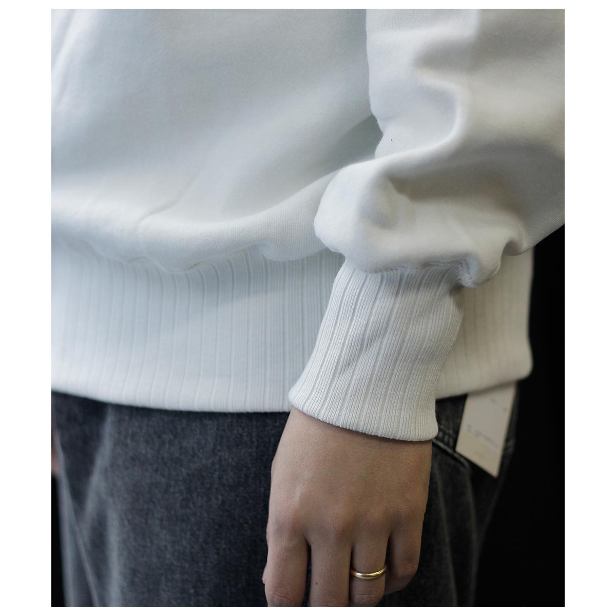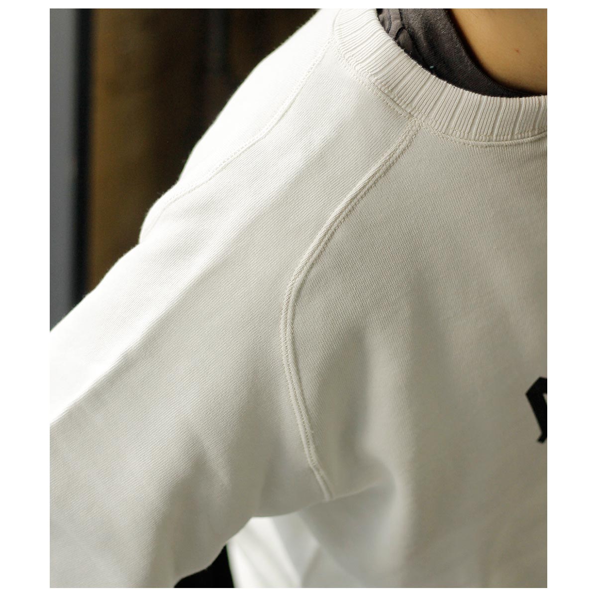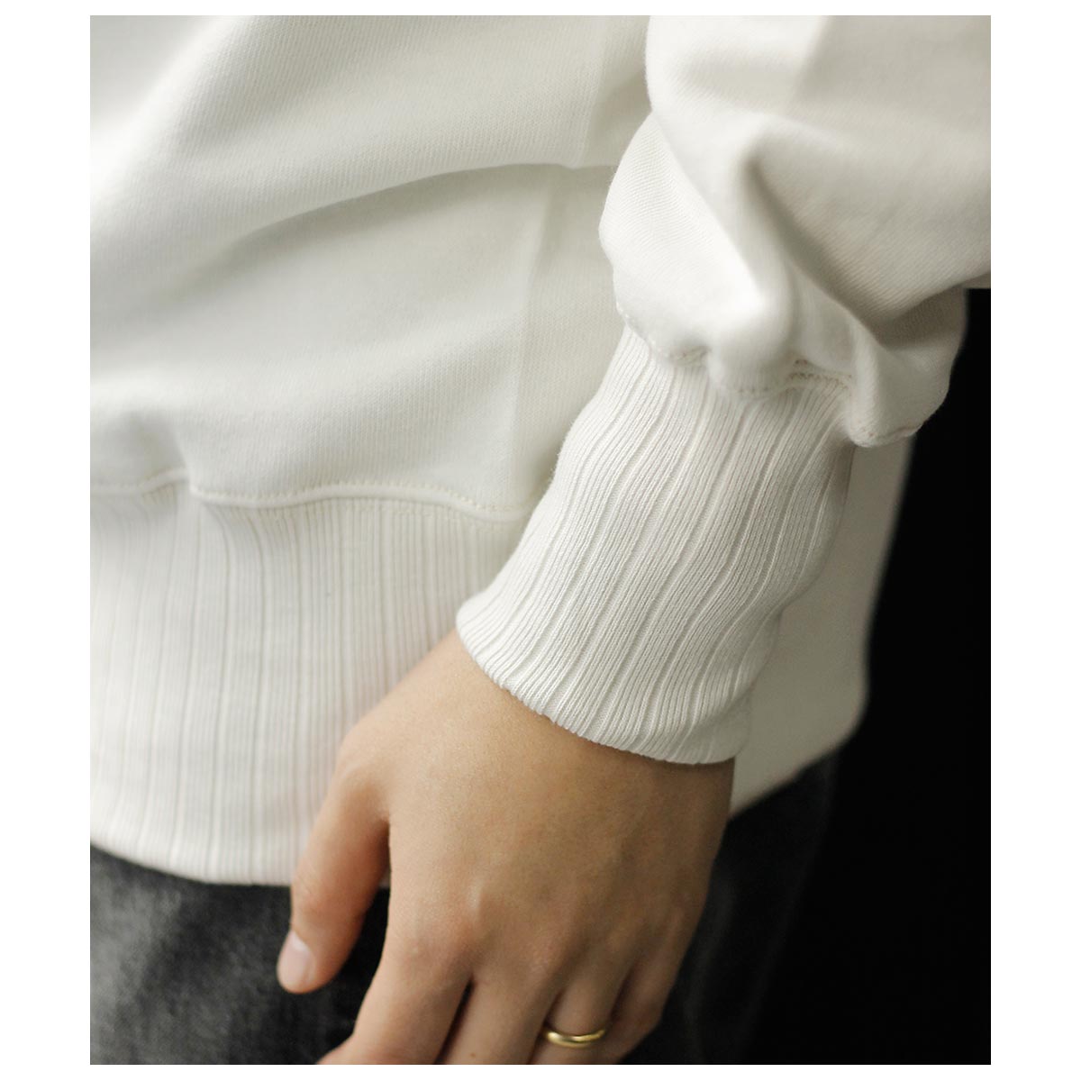 針抜きリブのフリーダムスリーブを忠実に再現したクルーネックスウェット。