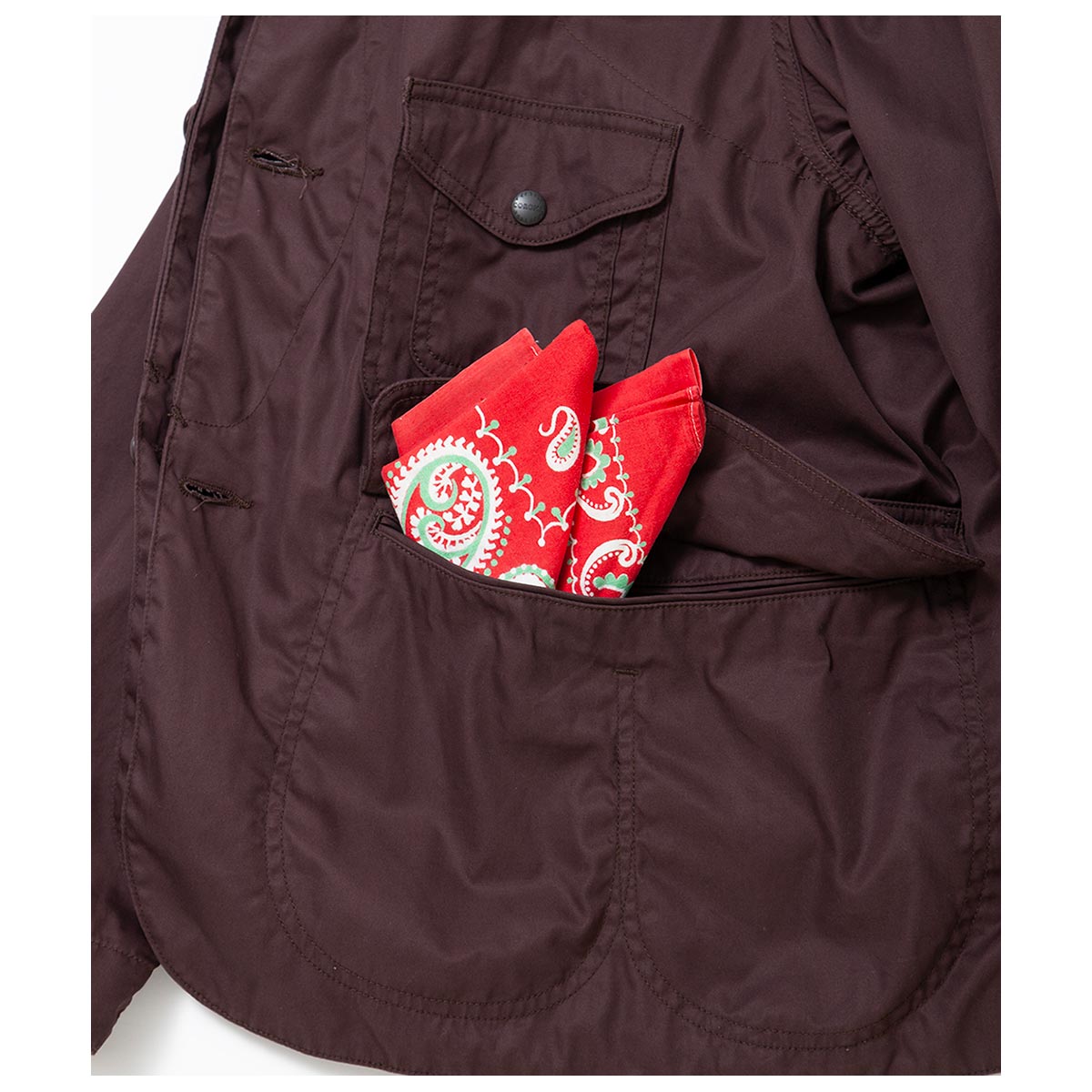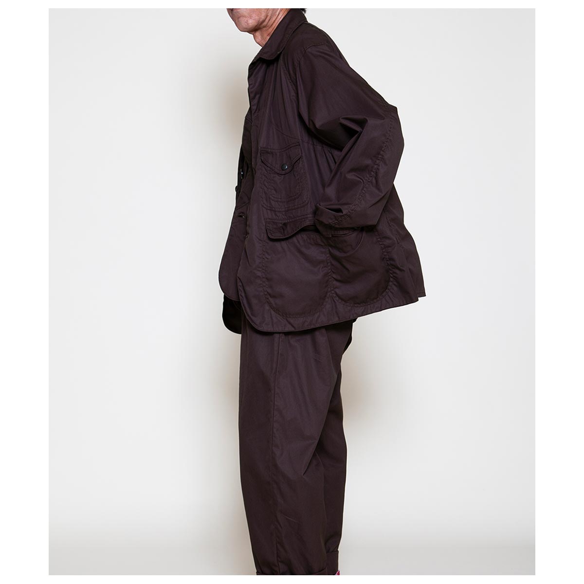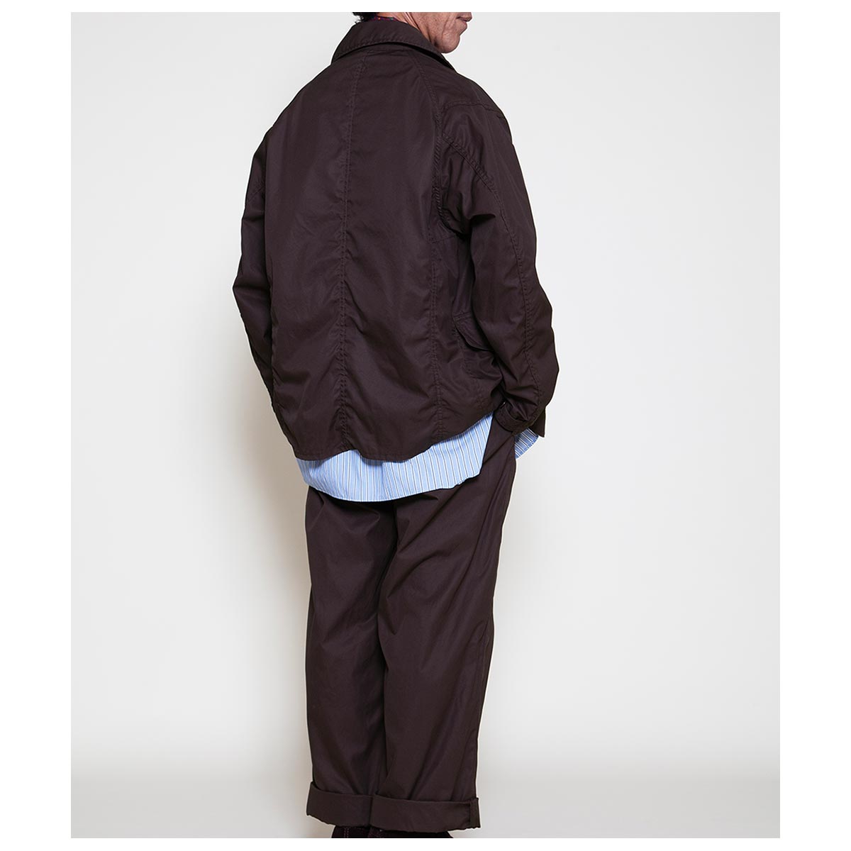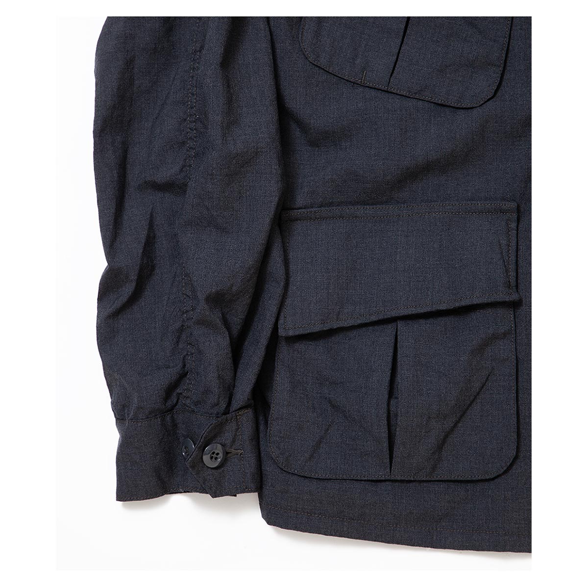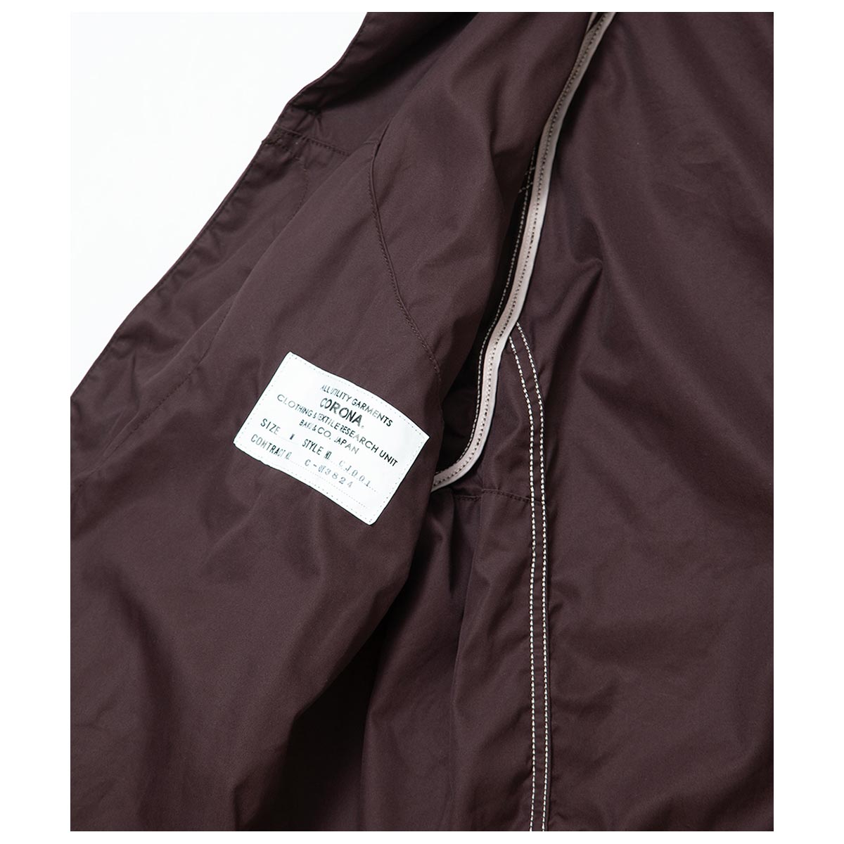 生地は1940’s・US ARMYの山岳用フィールドジャケットで使用されていた生地を自社で分析しオリジナルテキスタイルとして制作した、CORONAのロングラン定番素材。 80 番手双糸の超高密度ギャバシンで、ヌメっとした肌触りと光沢感が特徴です。