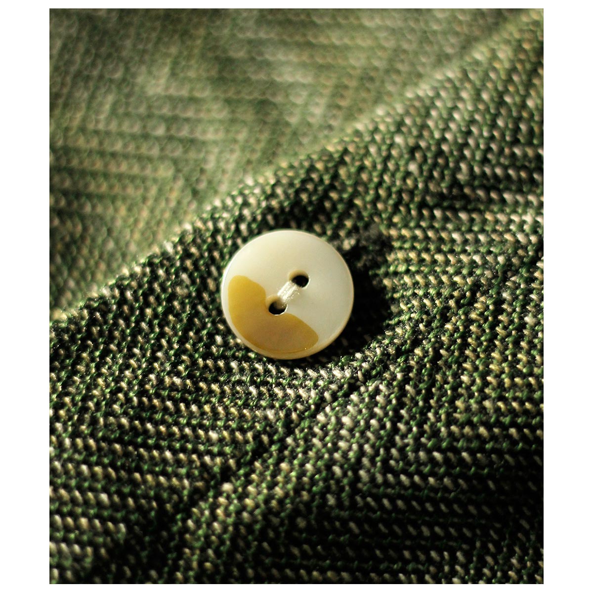 釦には希少な琵琶湖真珠貝二つ穴ボタンを使用しています。