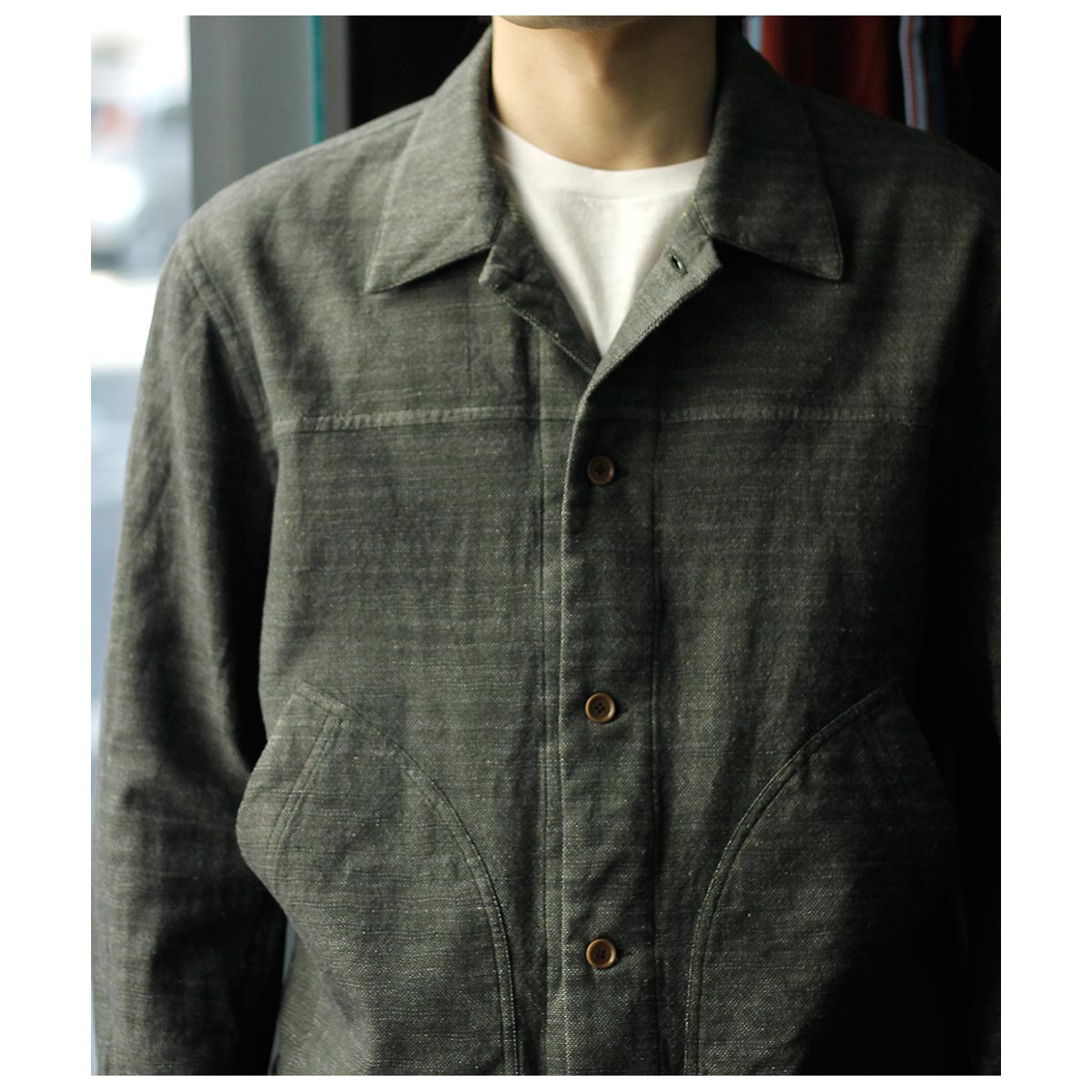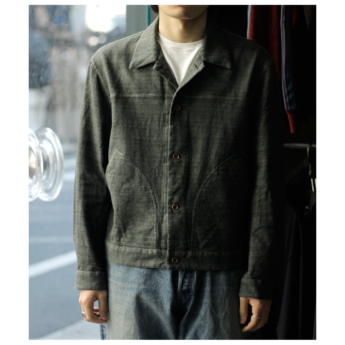 形はヴィンテージのデニムジャケットから様々なディテールを取り除き軽く仕上げましたモデル。