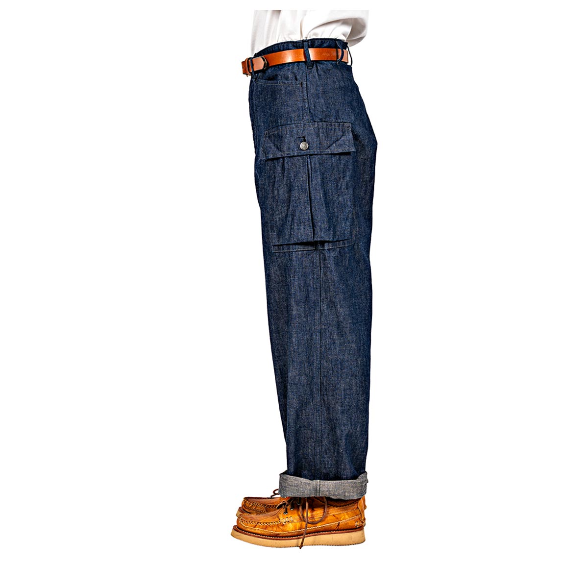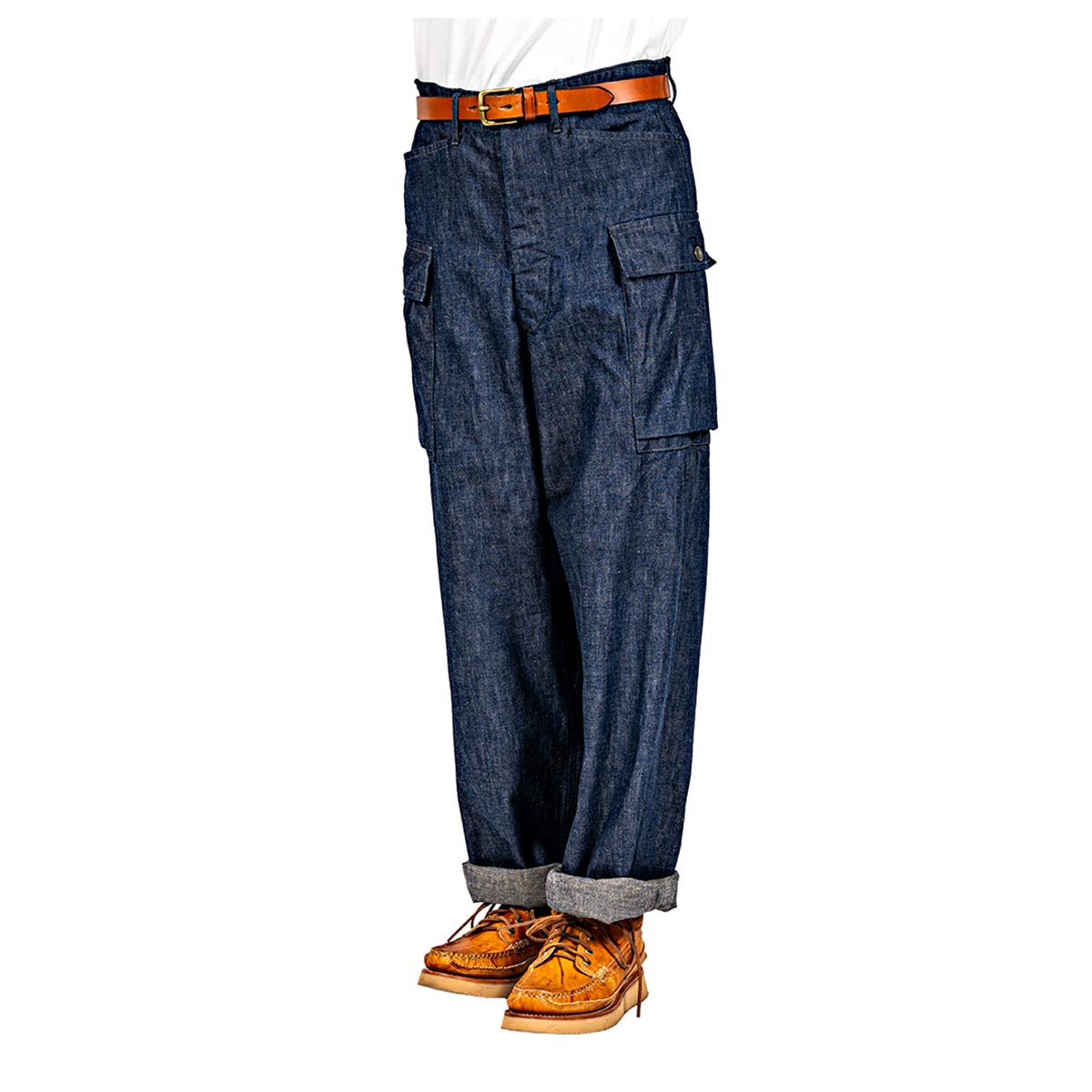 発想はシンプルで、「サイドカーゴのM43にフロントポケットがあったら便利ではないか」というもの。バックポケットを省くことでパンツ自体は軽く、ヒップ周りももたつかず、実用性とバランスの良さを兼ね備えています。「なぜ自分は思いつかなかったのか」と悔しくなるほど完成度の高い仕様です。