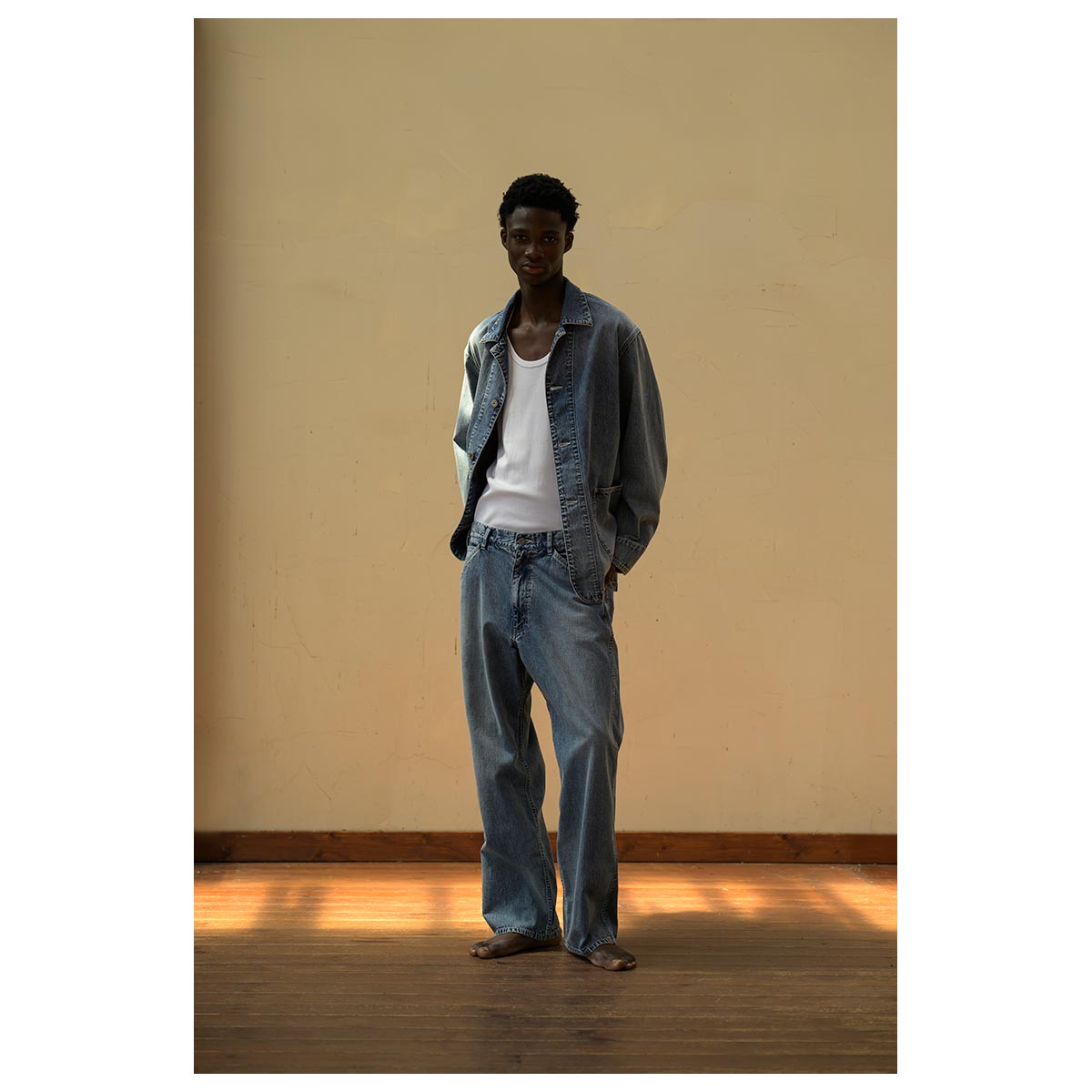 オール。所謂ビンテージの⾊落ちとはまた違ったムードを⽬指し、⼿作業と洗い加⼯を