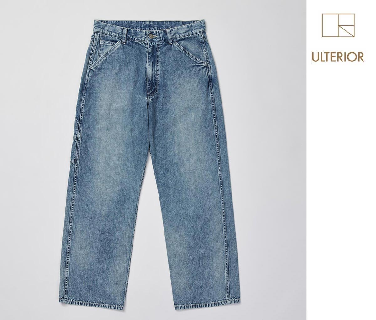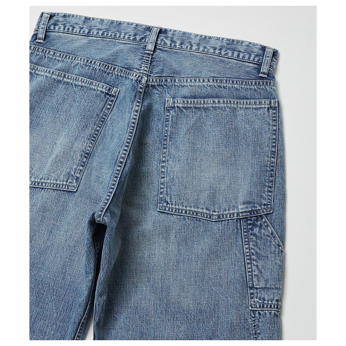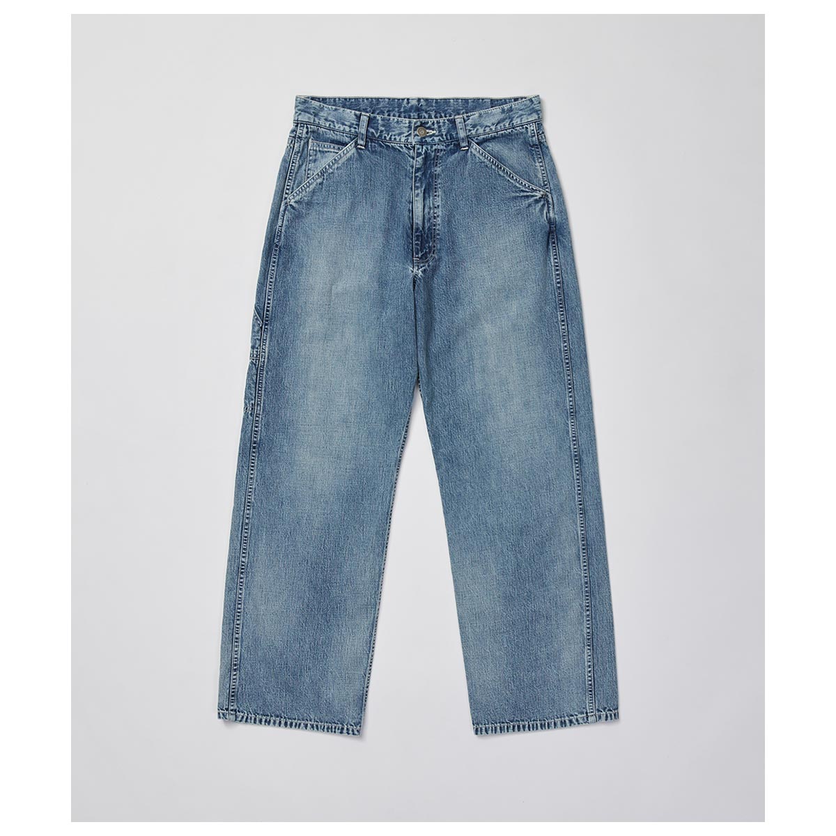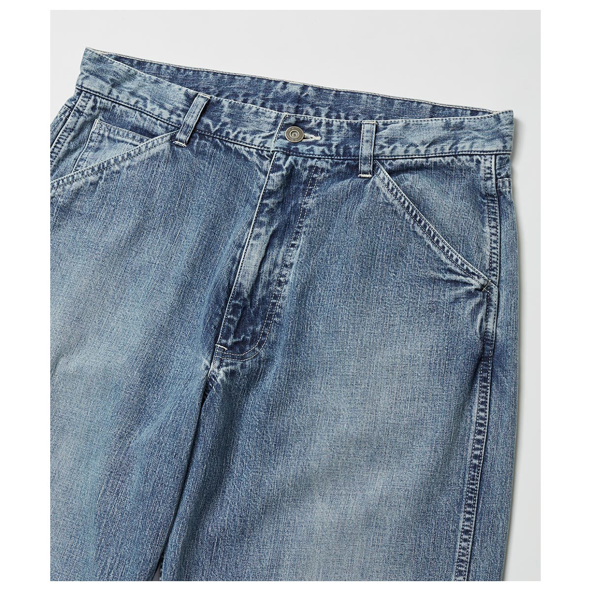 ペインターパンツ。所謂ビンテージの⾊落ちとはまた違ったムードを⽬指した加⼯は、