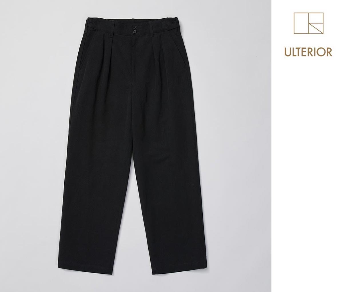 フロントの隠しタックでヒップ周りの分量感を出しながら程良いワイドシルエットに仕