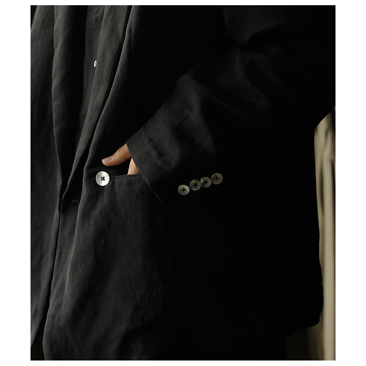 経糸にシルク、緯糸にリネンのツイル生地を使用。シルクをフィブリル化させて光沢感を抑え柔らかく仕上げています。