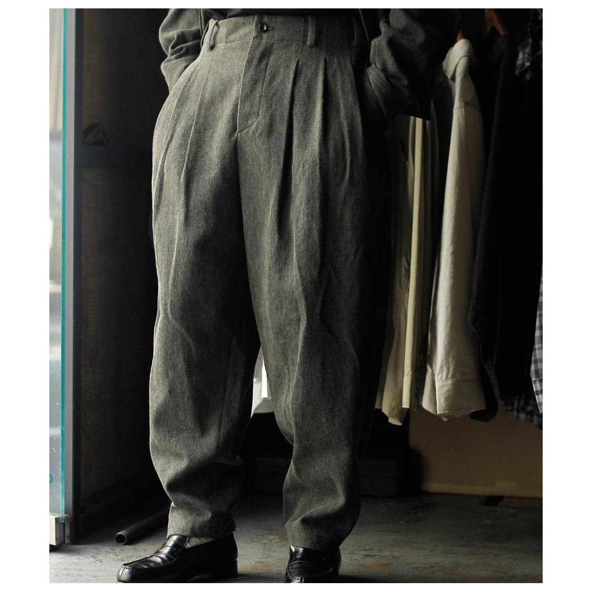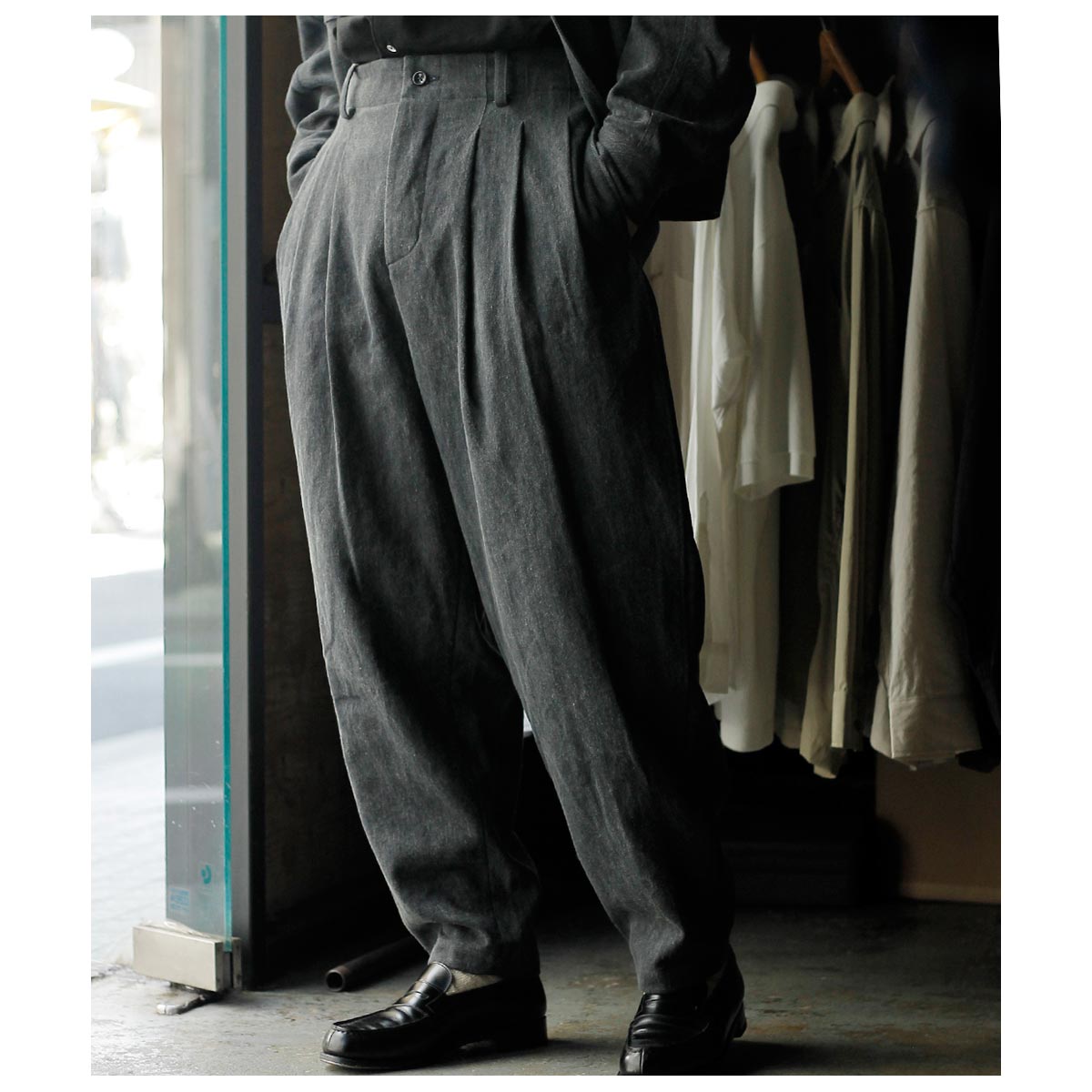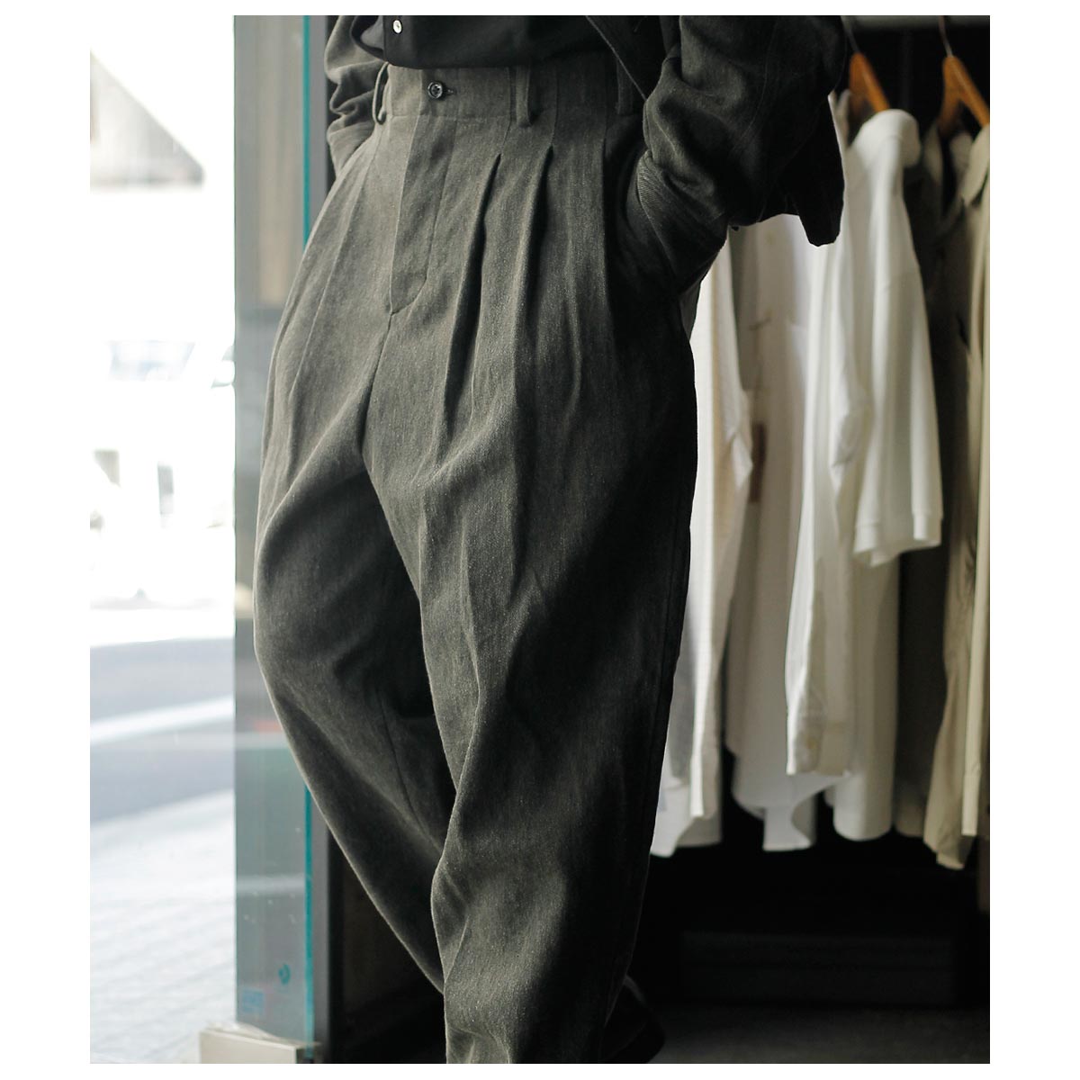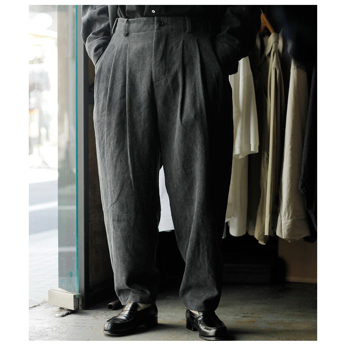 コットン リネン ツイル 3タック テーパード パンツ Cotton Flax Twill 3Tucks Tapered Pants (P001-26SS)