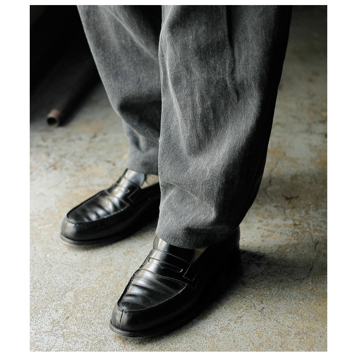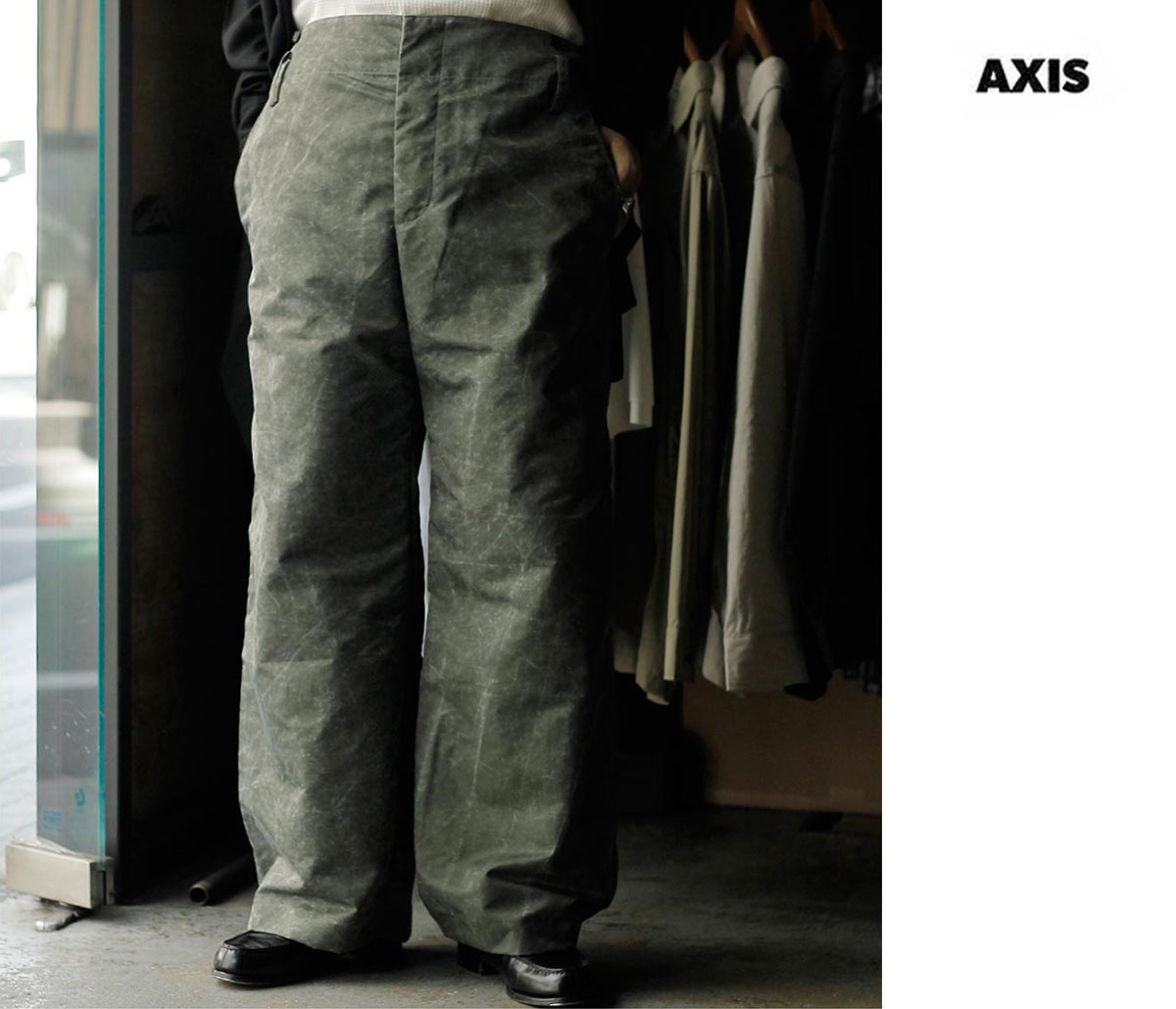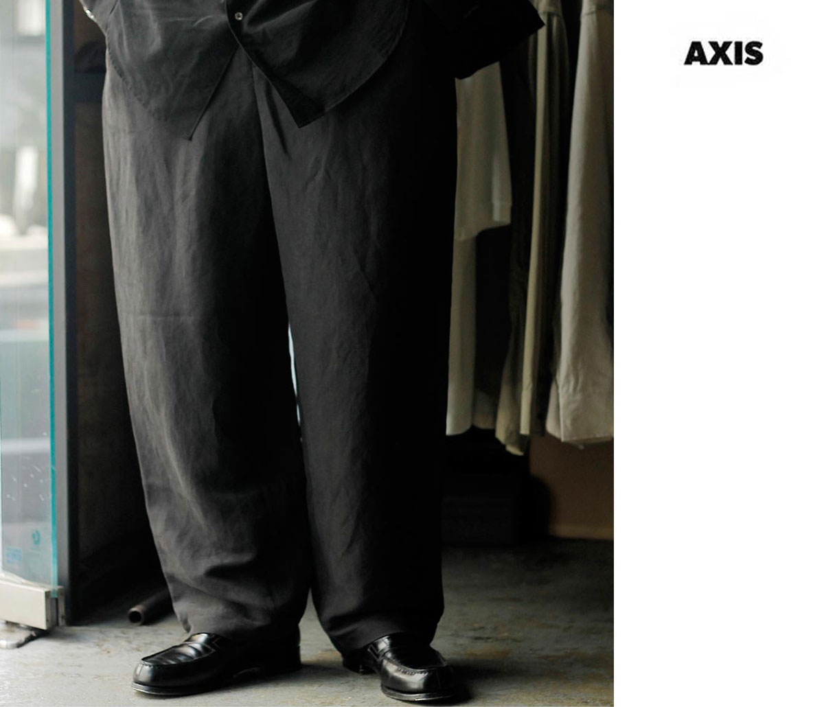 腰回りにタックでしっかりボリュームを出し、裾に向けてテーパードさせているアクシスの定番パンツです