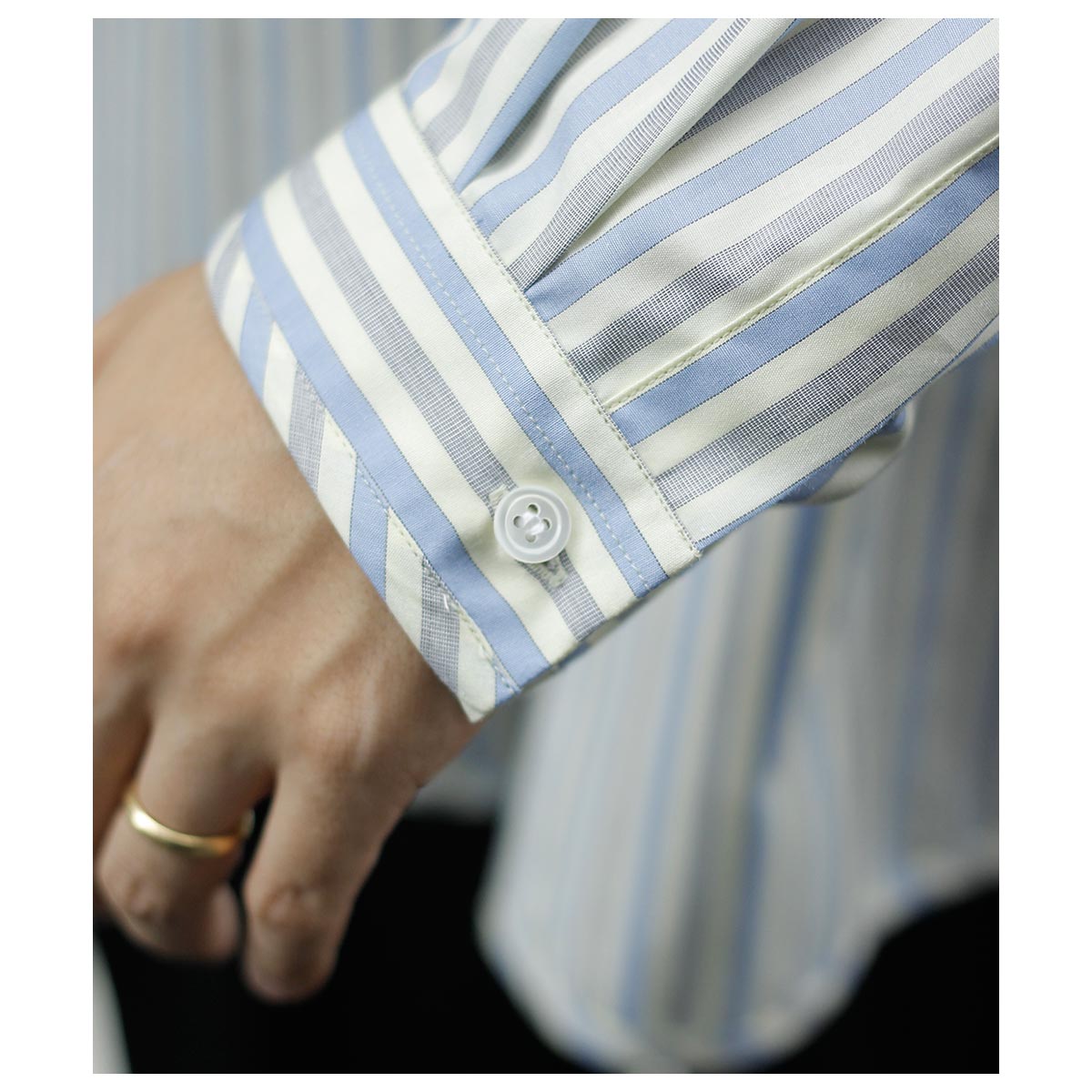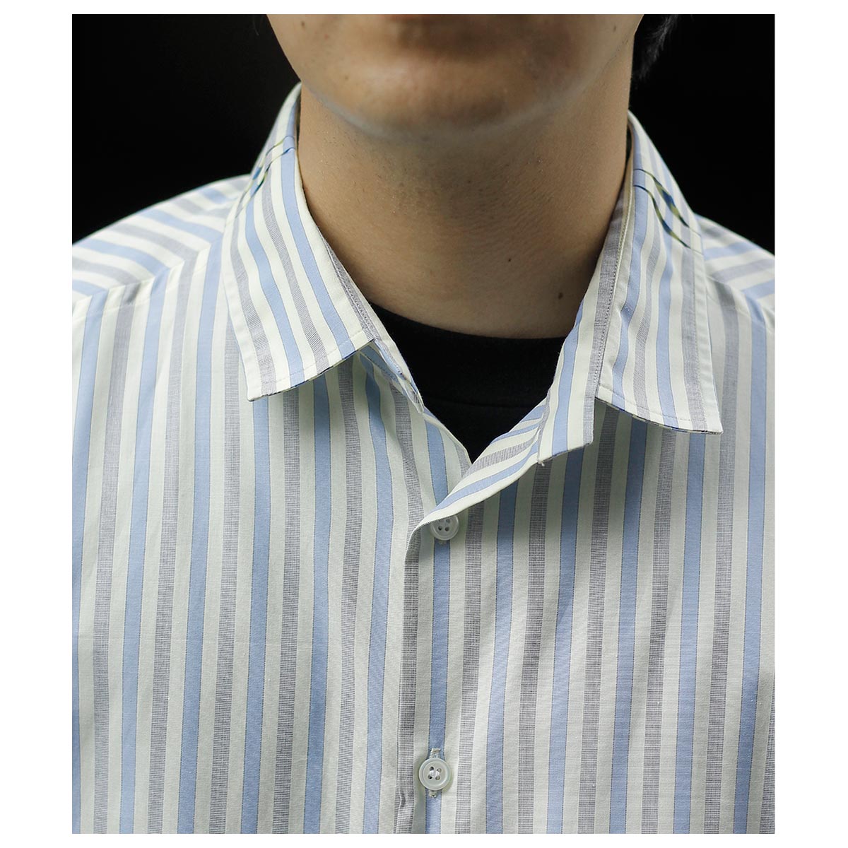 マナベ MANAVE ストライプ タックカラーシャツ Tuck Collar Shirts STRIPE MADE IN FRANCE (CH00-26SS-ST)