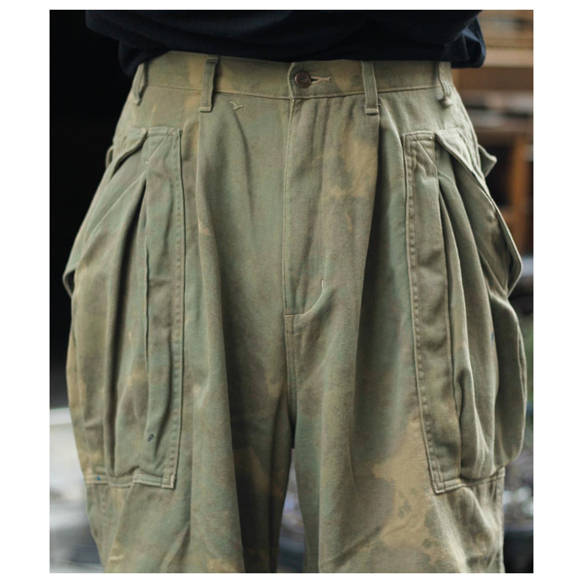80sBritishArmyグルカショーツの古着をイメージした柔らかいツイル生地を採用。特殊なインクで手捺染プリント、加工を施し独特の色合いのオリジナルカモフラージュ。