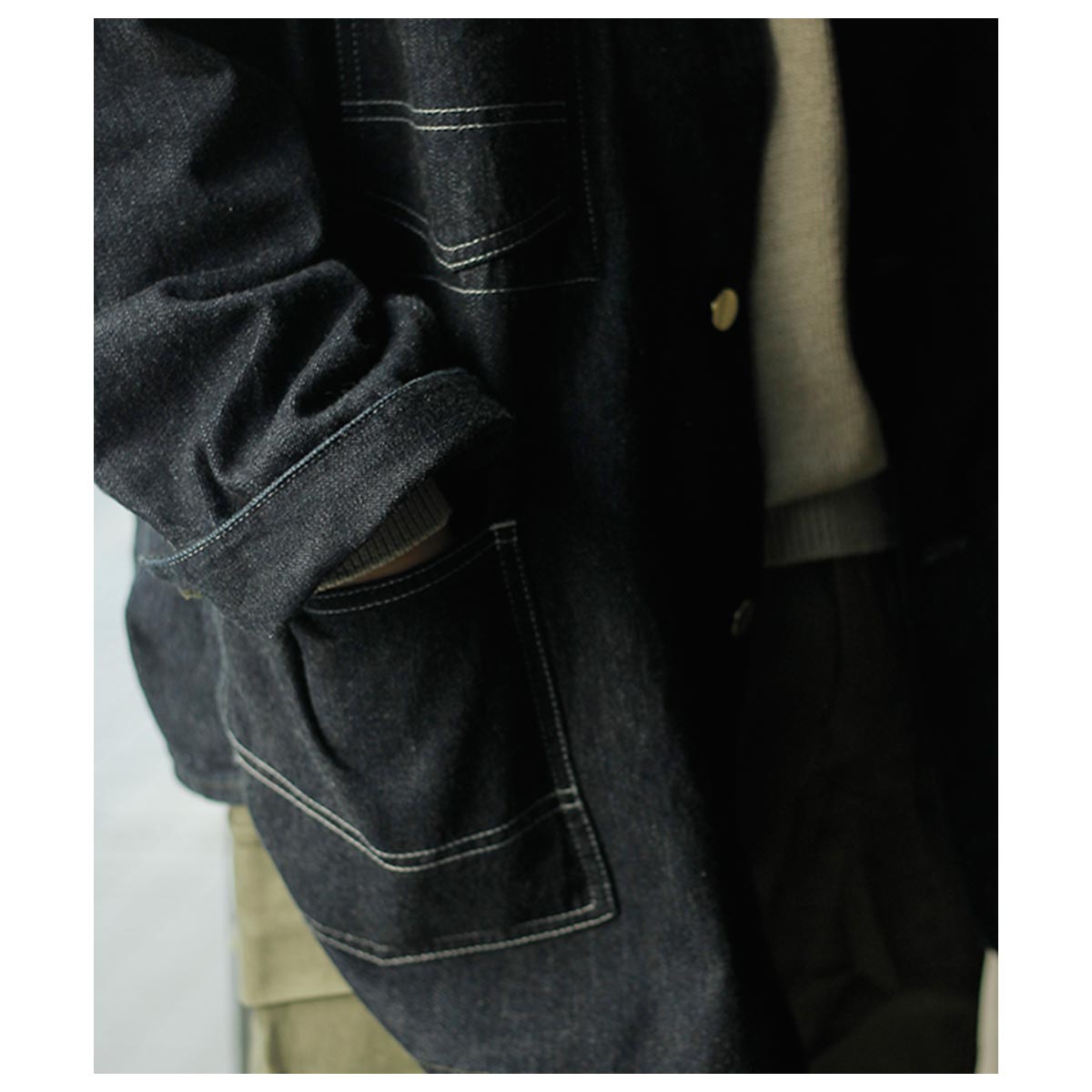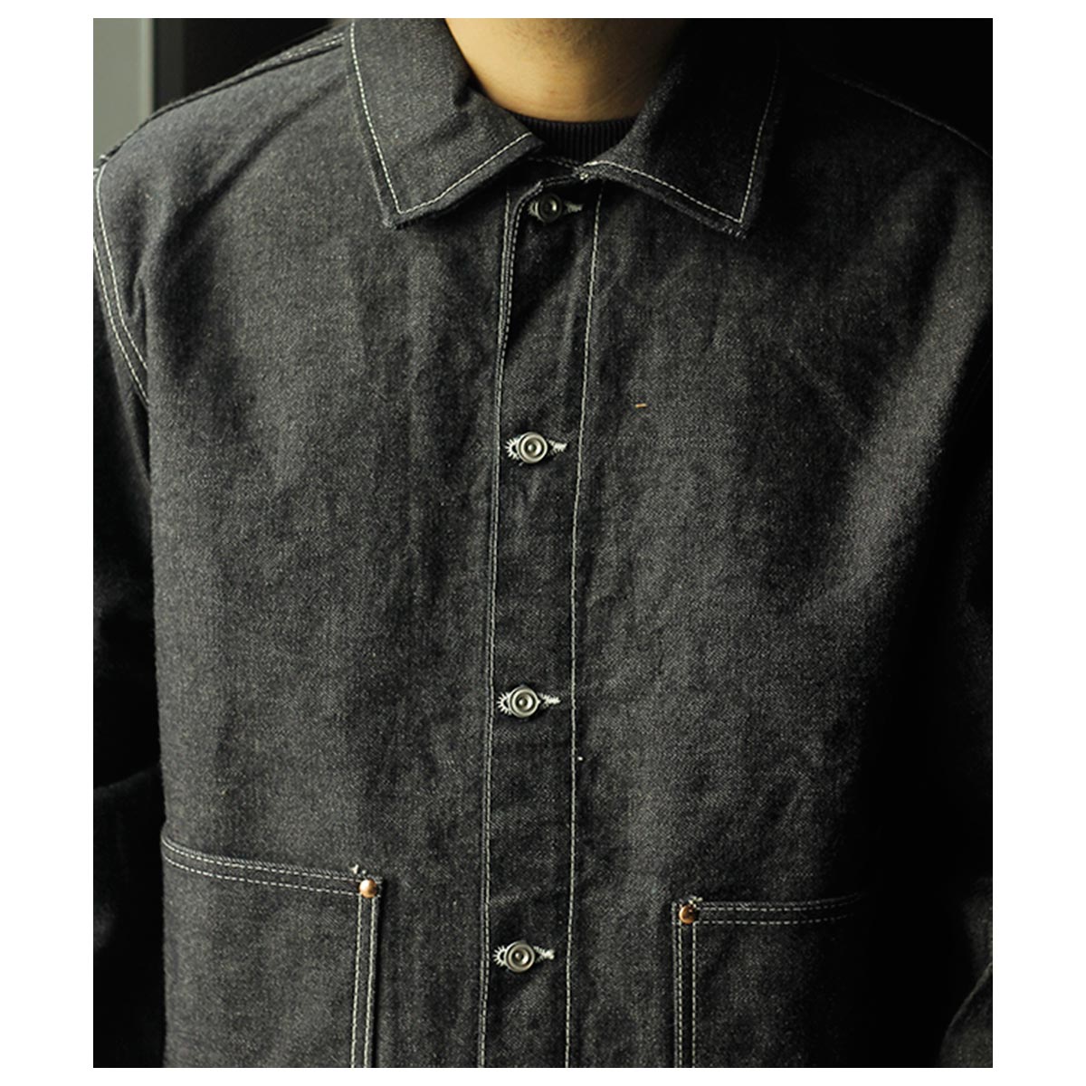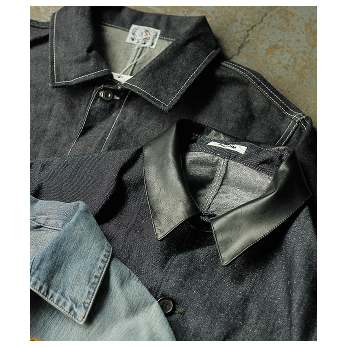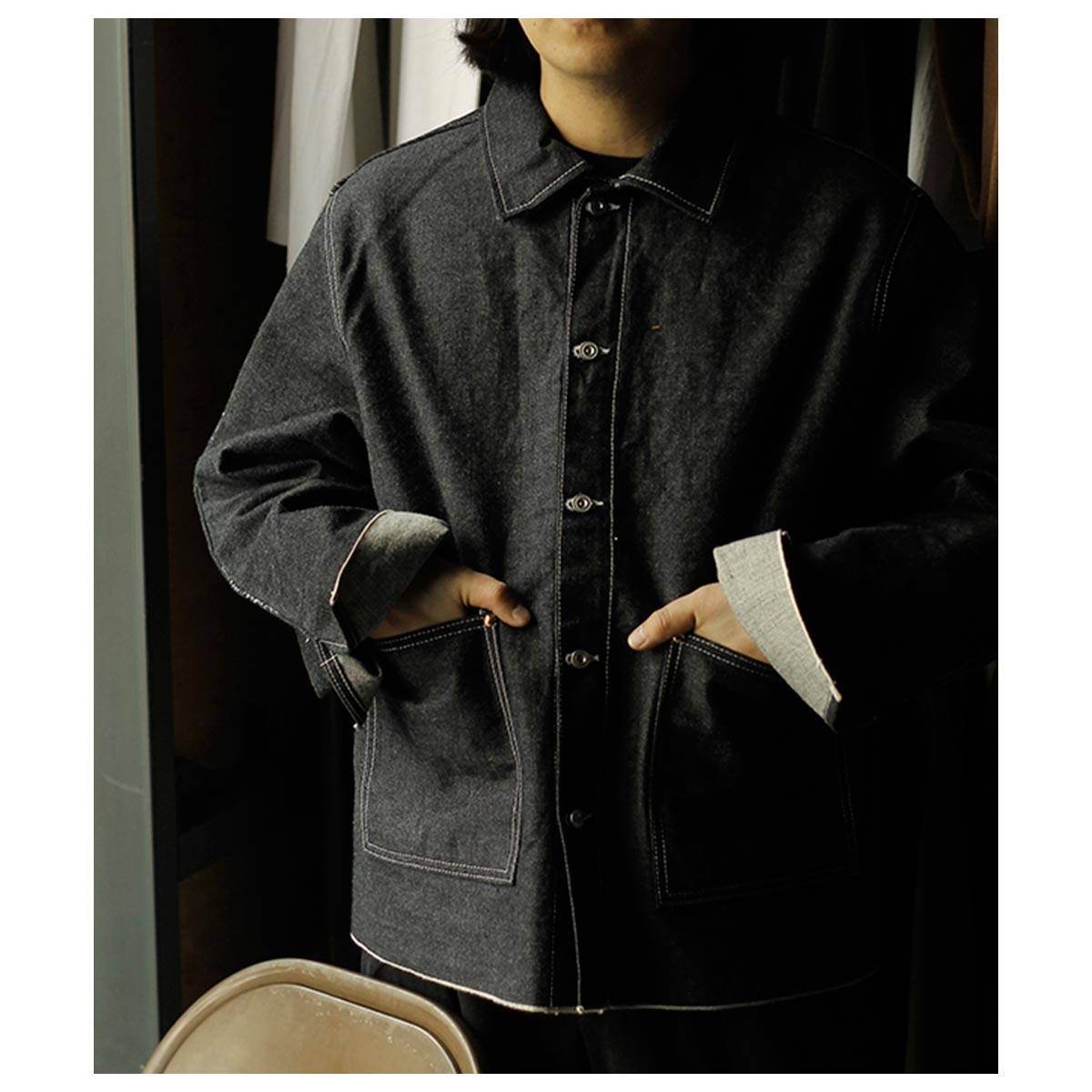 大戦期のカバーオールをベースに気負わず羽織れるパターンワークで仕上げたカバー オール。所謂ビンテージの色落ちとはまた違ったムードを目指し、手作業と洗い加工を いくつも組み合わながら、奥行きのあるフェードや色彩の濃淡を細かく調整して仕上げています。今季はさらに全体の色落ちを強くし、アタリ感やフェード感を強く反映させてアップデートしています。