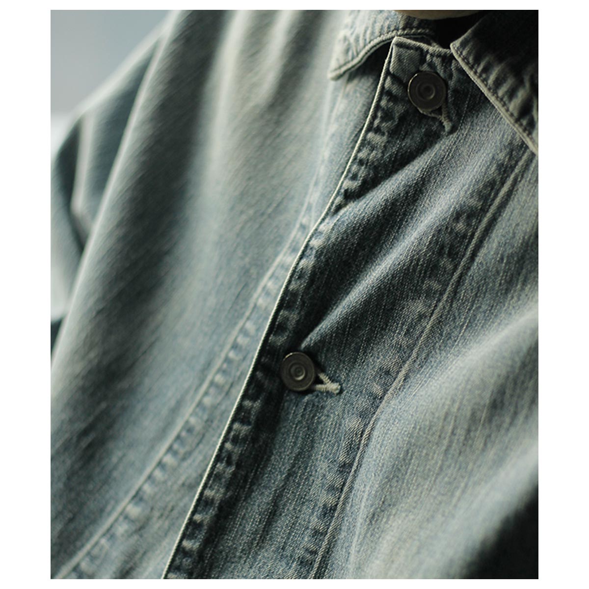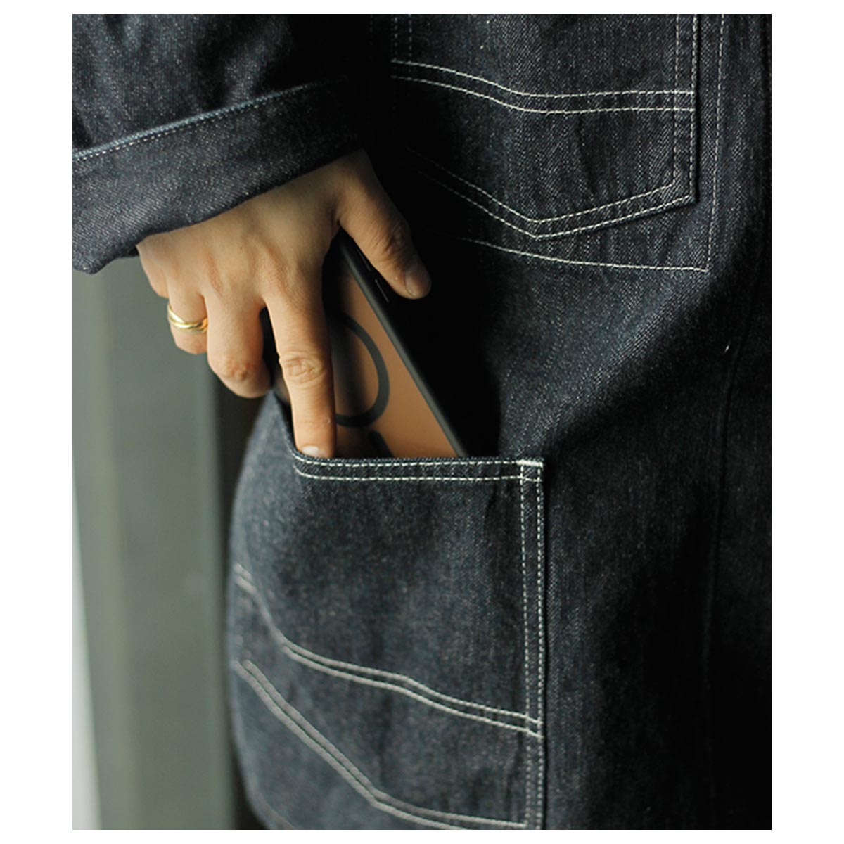極上生地のシルクデニム、光沢感とシャツ感覚で着れる生地感で、カバーオールをドレスアップしてくれたような上質なムードを漂わせています。