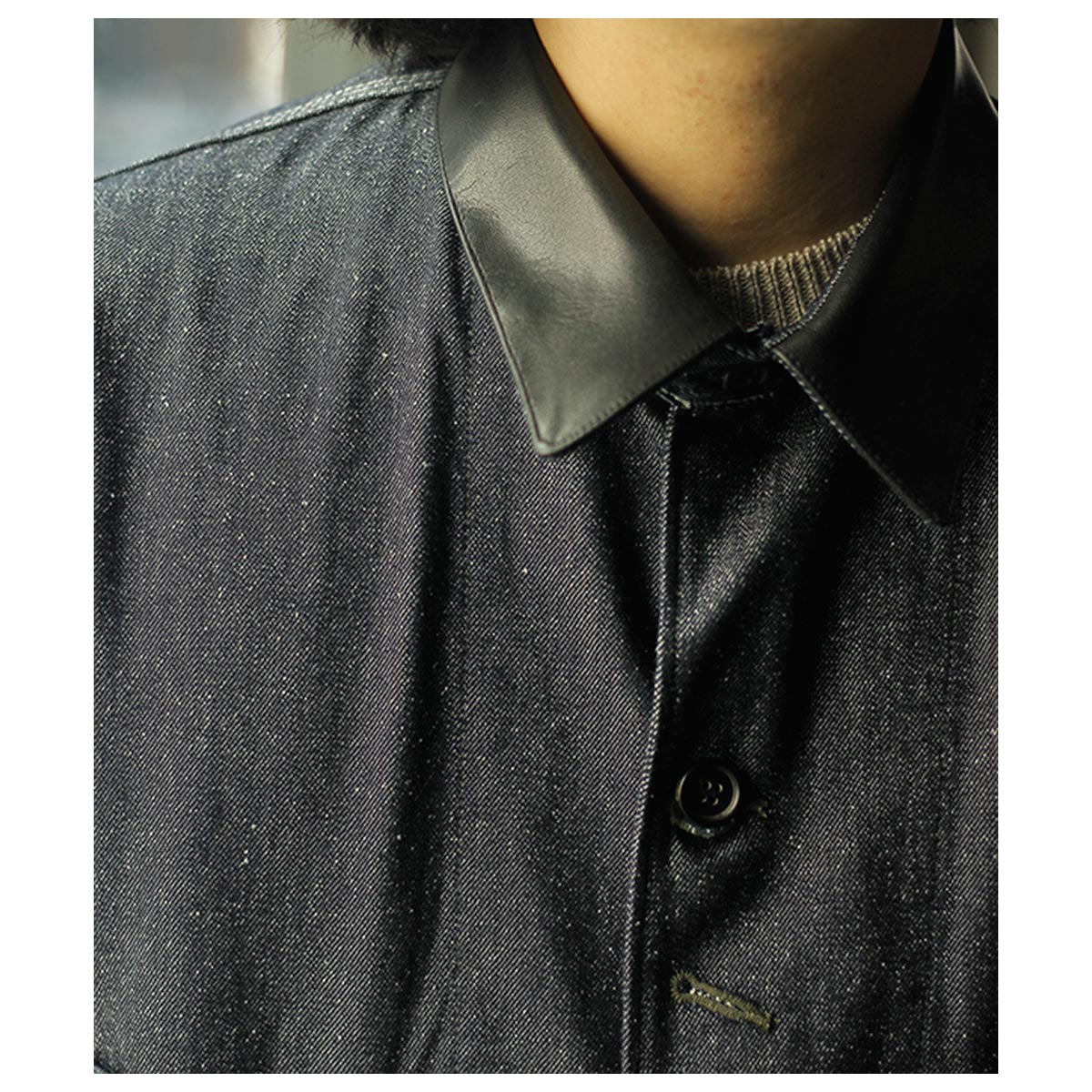 襟レザーの変化とともに、シルクデニムの着心地も楽しみたい。