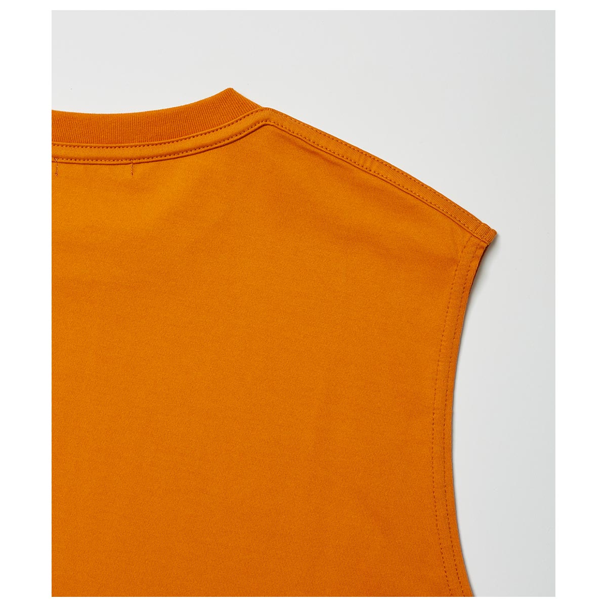 1枚でも着⽤できるようにリラックス感あるフィッティングに仕上げたスリーブレスT