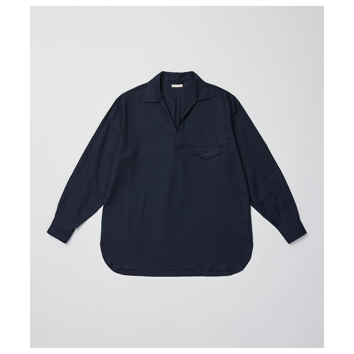 フロントの程よい開きが⼼地良いスキッパーシャツ。空気を孕んだようなゆったりとし