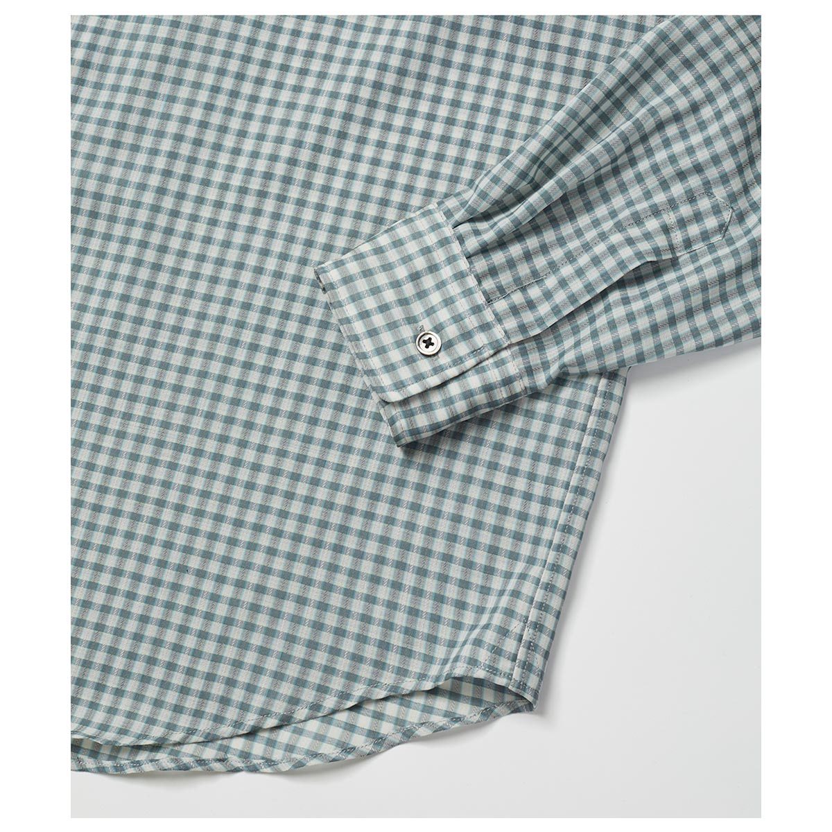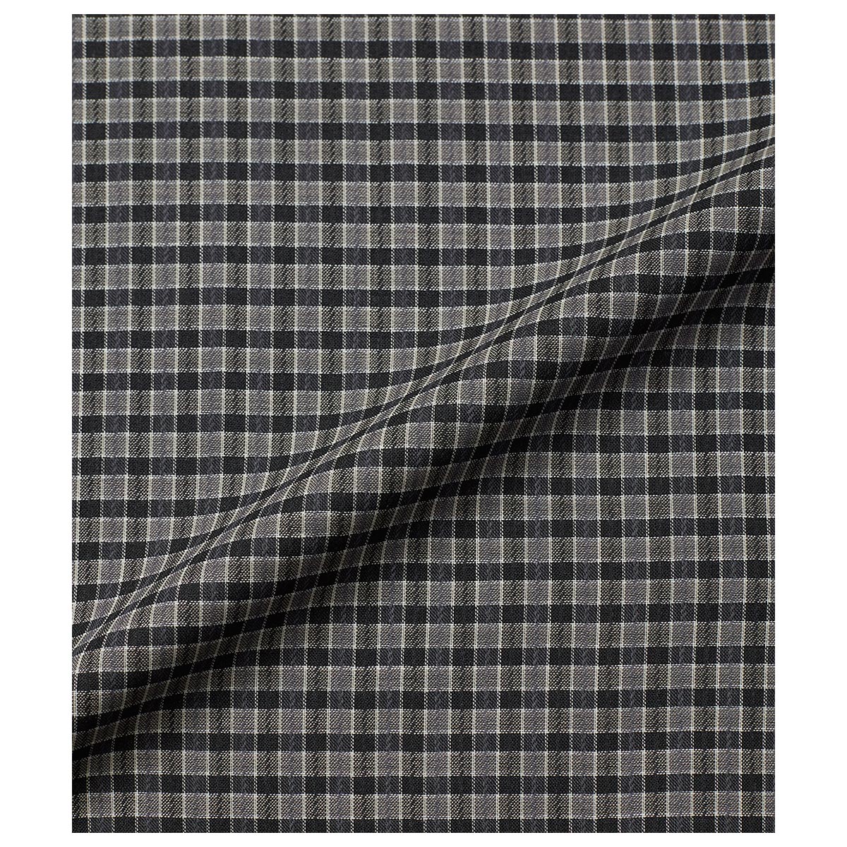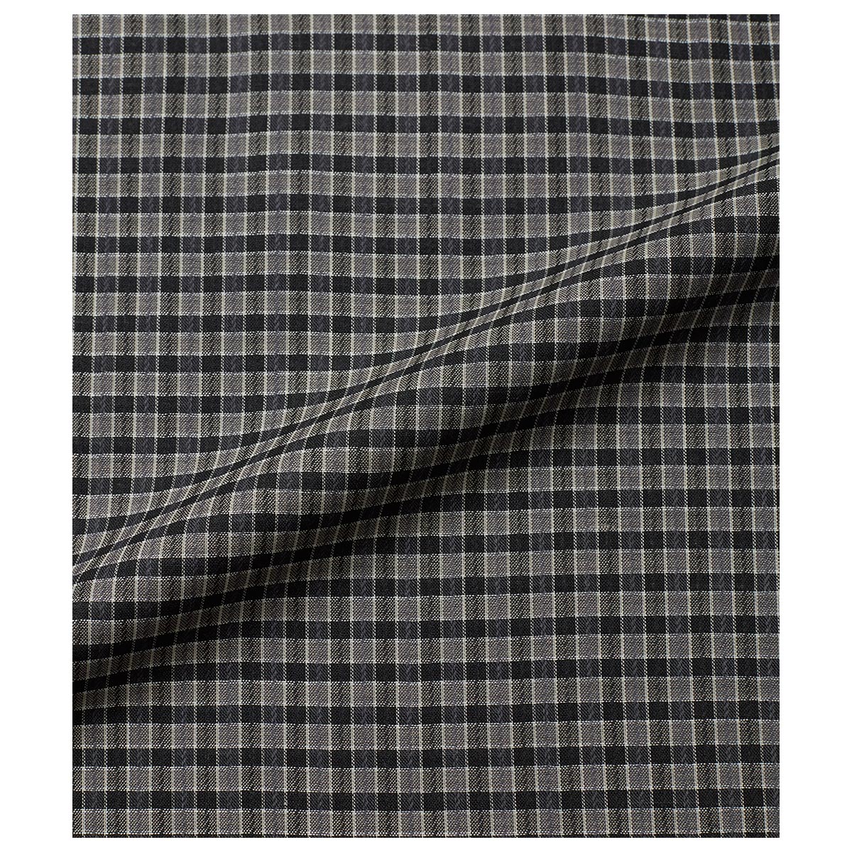 に染め分けてドビー織りで奥深い⾊合いのチェック柄に仕上げました。細番⼿を単⽷使