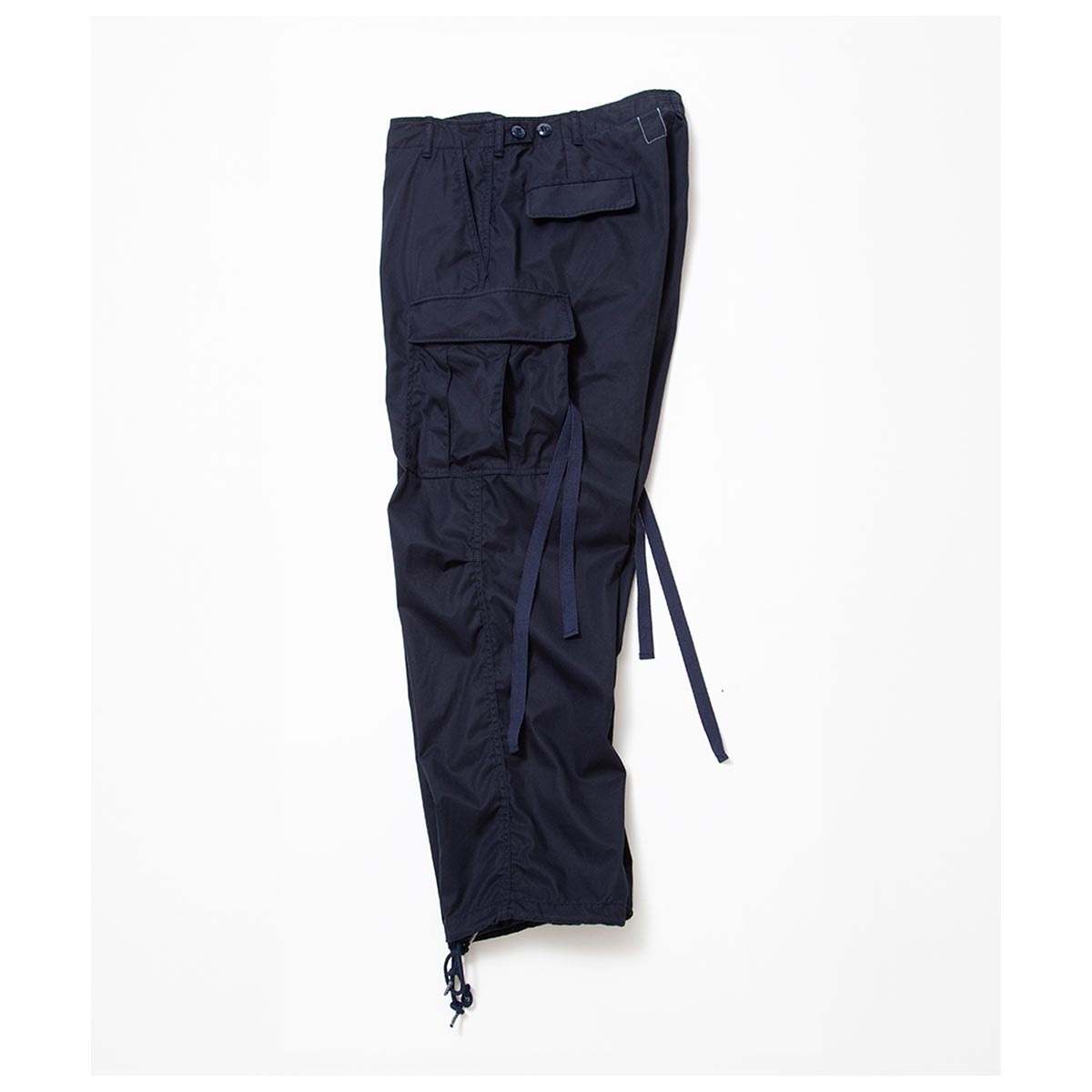 1960 年代ベトナム戦争で使用された米軍ジャングルファティーグパンツ(2ndモデル)に着想を得た、ブランドのシグニチャーアイテムです。ジャングル戦を想定した軽量かつ機能的な設計を継承し、ゆったりとしたシルエットと豊富なポケットが特徴。無駄を省いた「必要最低限の機能美」を体現しています。 独自に進化したやや太めのテーパードシルエットで、快適かつ洗練された履き心地を実現。カーゴポケットをコンパクトに改良し、重心を上部に設定することで、日常使いに最適なバランスとスタイルを提供します。