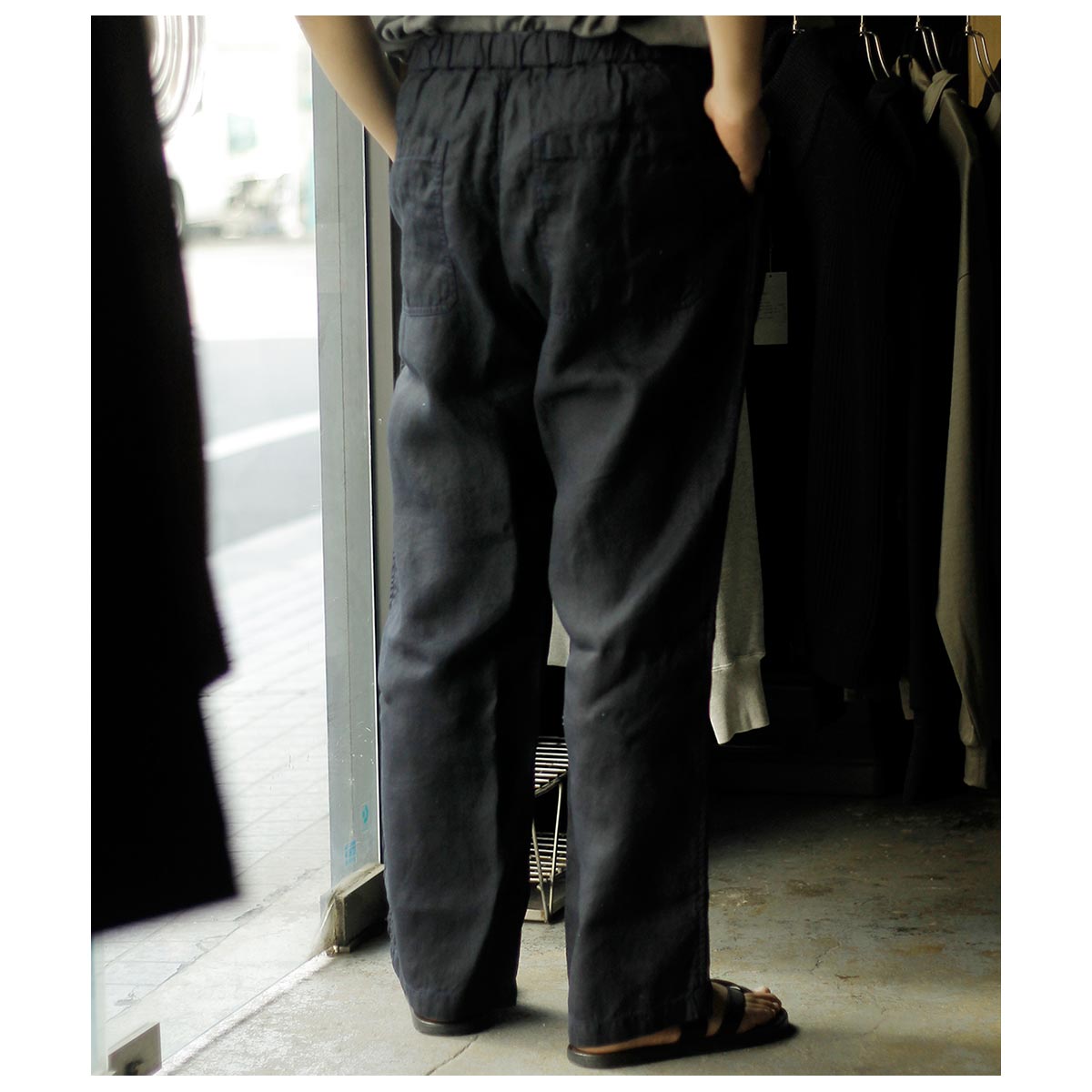 MITTANの定番であるストレートシルエットのパンツで、程よいゆとり感と適度な丈感が特徴です。ウエストはゴム仕様になっており、内側の紐でベルトなしでも快適に着用できますが、ベルトループも配しているため、ポケットをしっかり活用する際などにベルトを使用することも可能です。