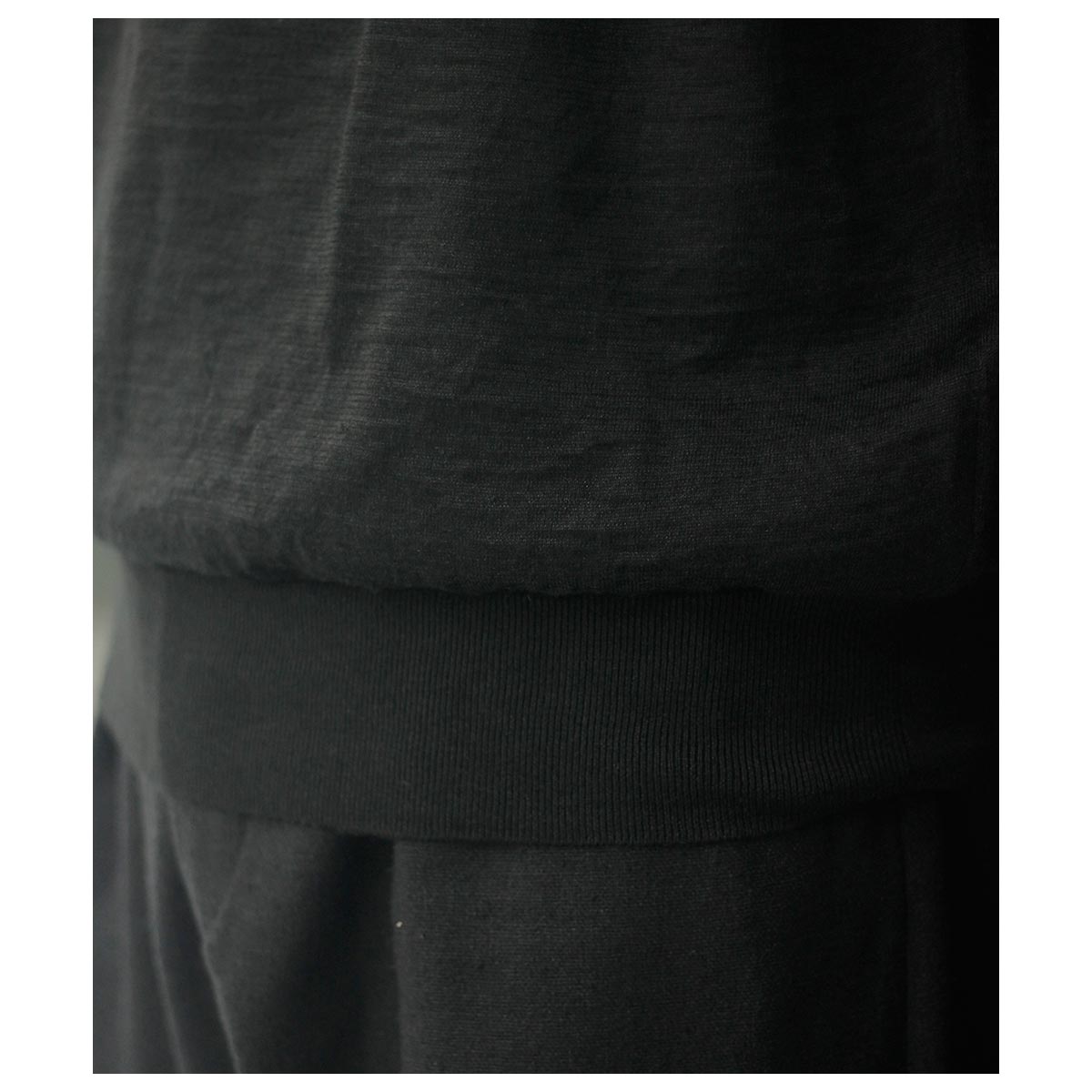 首回りはミニマムな設定で裾袖ともにリブを強めに配していて、透け感を楽しめる上品なシルエットにしています。タンクトップやノースリーブを合わせて、清涼感のある着こなしを楽しめます。