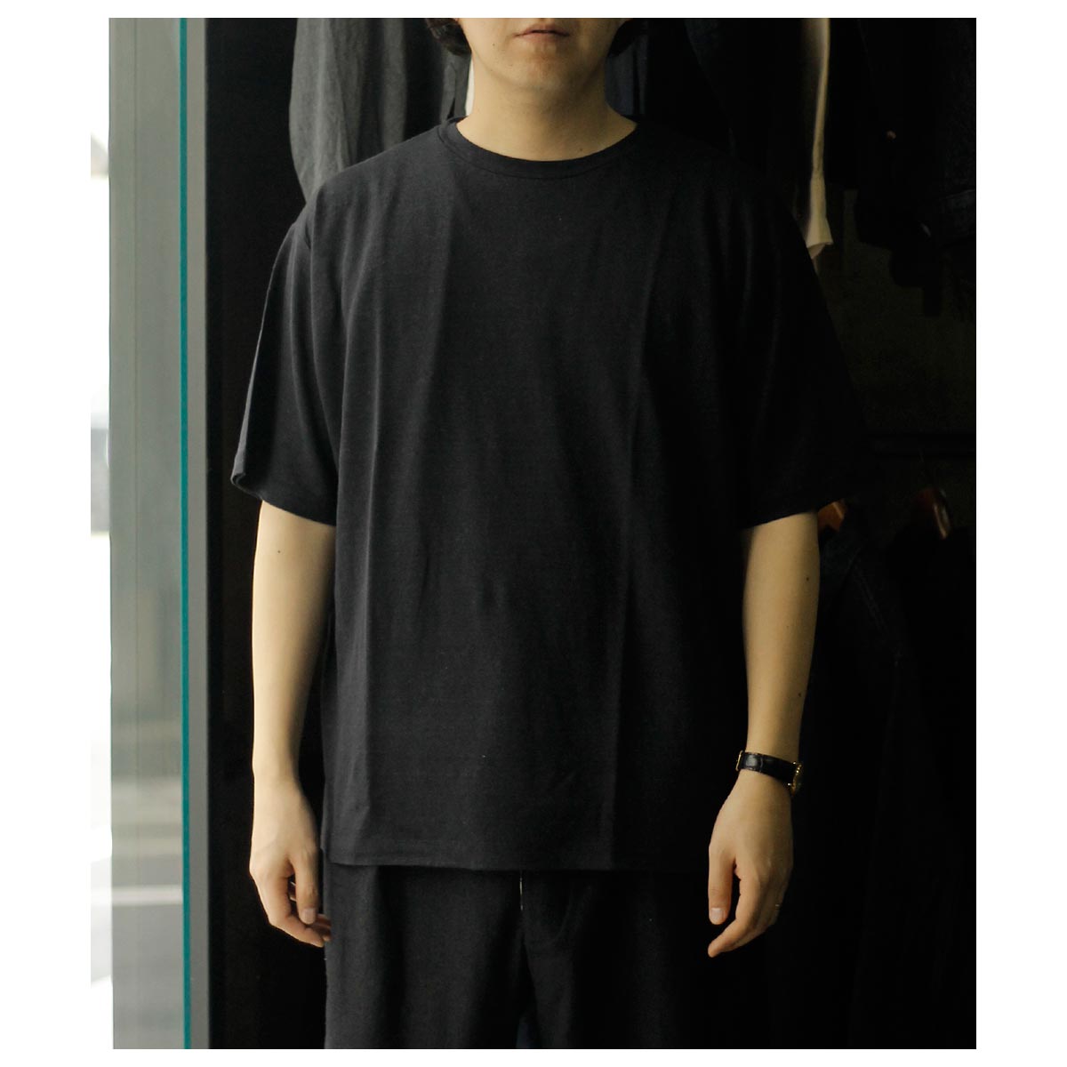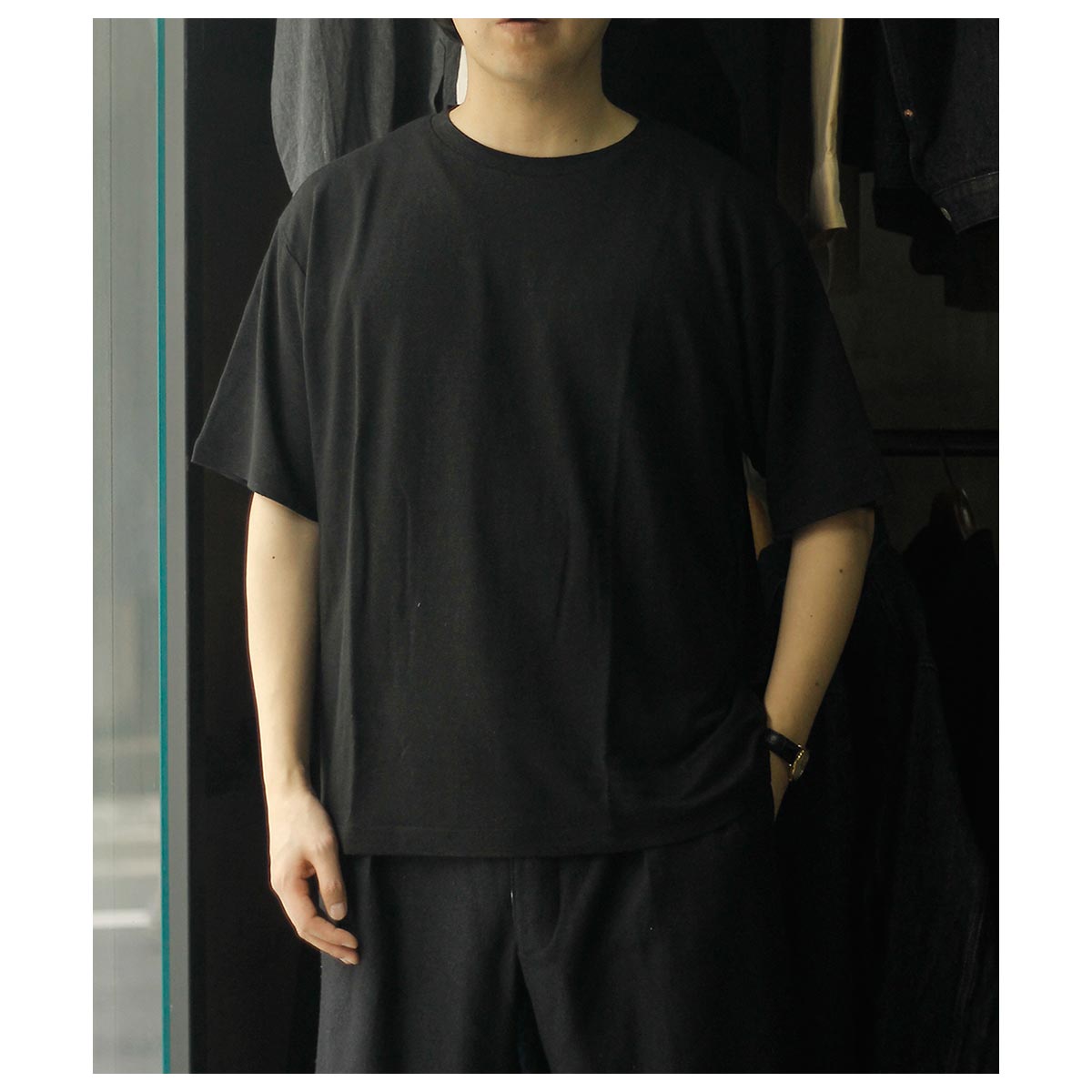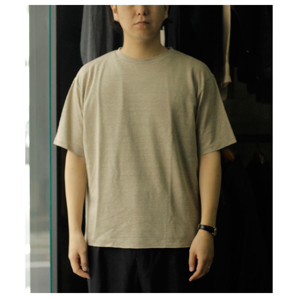 甘めの天竺組織でシンプルに編立て、強い洗いをかけることで、しなやかなドレープ感と柔らかな着心地、リネンならではの素材感が感じられるアイテムです。