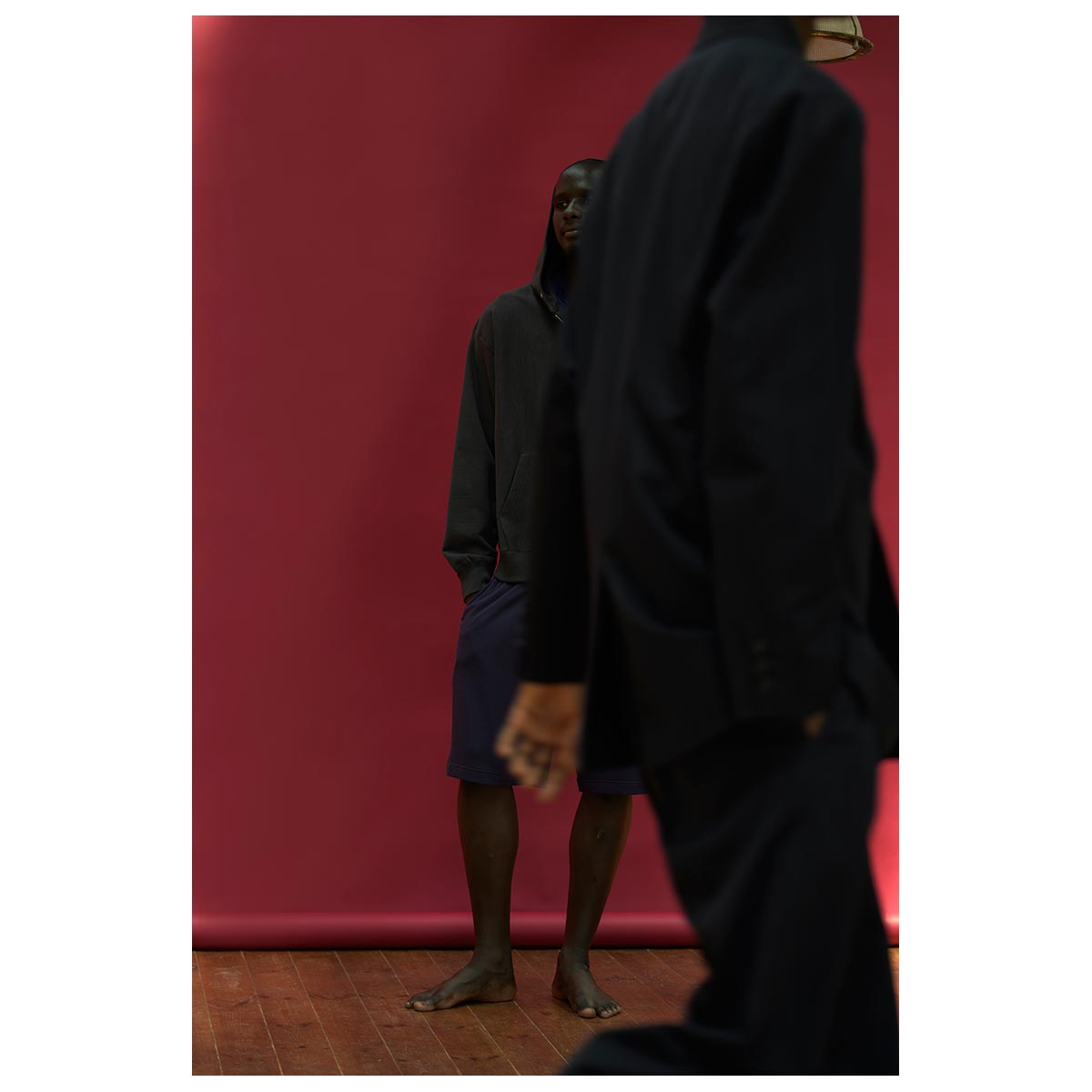リブの切替えやステッチワークでアクセントを付けながらアウトシームを排除した直線的なパターンは踏襲しながら、程よくルーズなシルエットが⼼地良いモダンなフォルムに仕上げています。